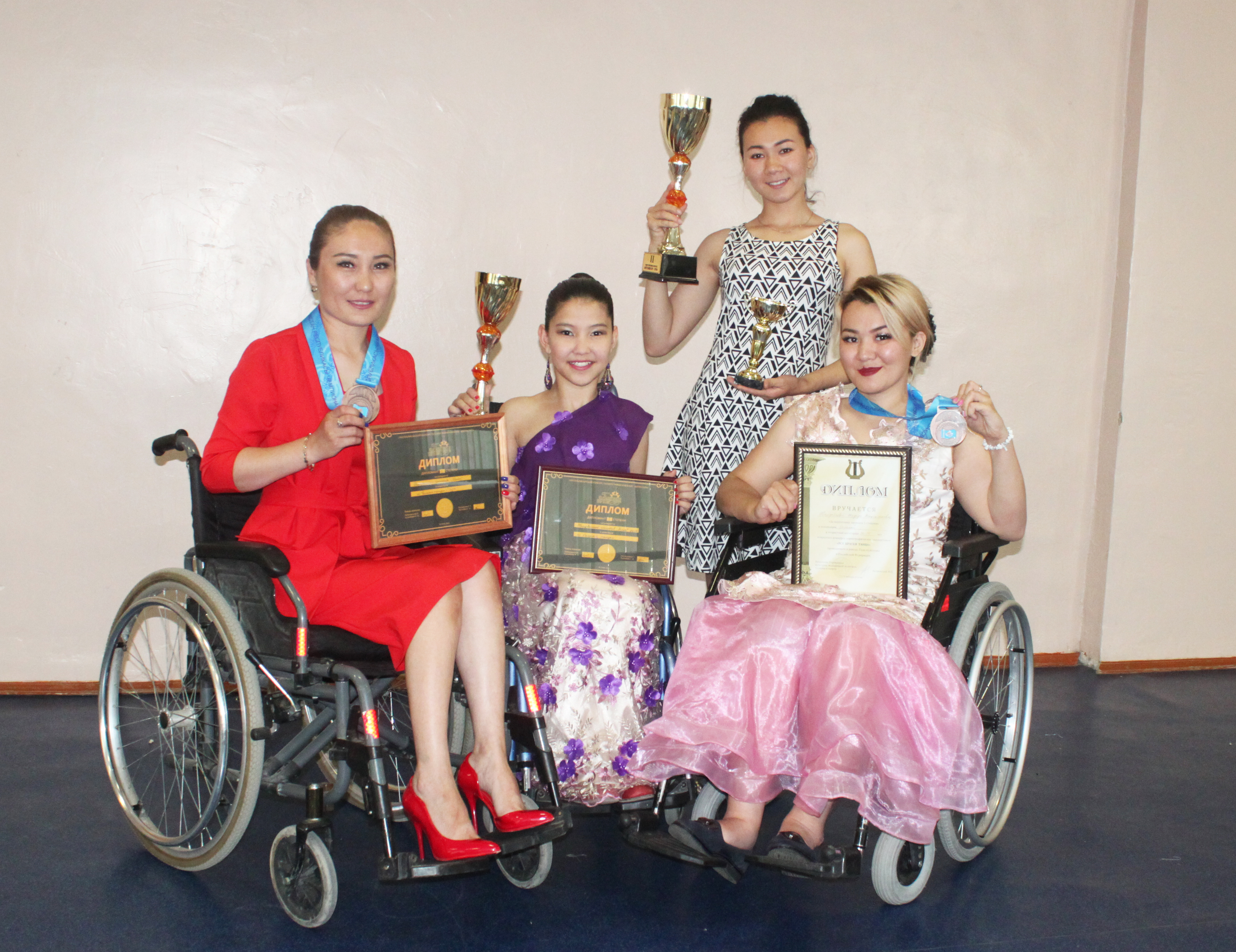 Это не первое выступление девушек - колясочниц на танцевальном турнире столь высокого уровня: в конце апреля они принимали участие в соревнованиях на Кубок Республики Казахстан по паратанцам, проходившем в рамках Международного турнира по танцевальному спорту «Qyzylorda CUP – 2019», на котором заняли 1, 2 и 3 места в различных категориях и получили от оргкомитета специальный приз - танцевальную коляску.