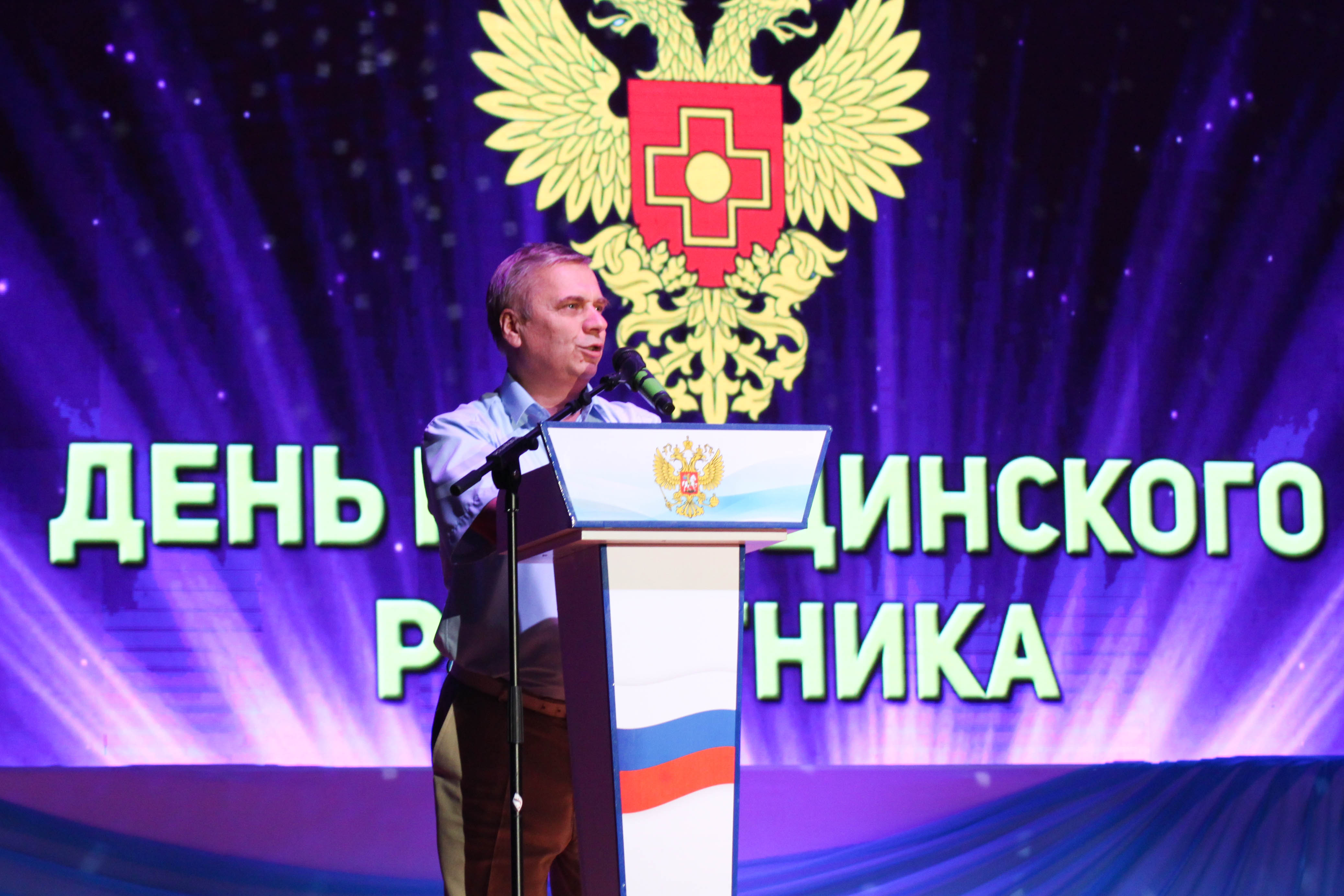 С празднично украшенной сцены работников медицинской сферы поздравил заместитель главы администрации города Байконура Николай Адасев. Он поблагодарил коллективы лечебных учреждений города за высокий профессионализм, отметив, что люди, избравшие эту профессию, достойны признания и глубокого уважения. Ведь они на протяжении всей своей жизни первыми приходят на помощь тем, кто в ней нуждается, заботятся о здоровье людей, спасают человеческие жизни. Николай Адасев пожелал медицинским работникам Байконура оставаться верным своей профессии и клятве Гиппократа.