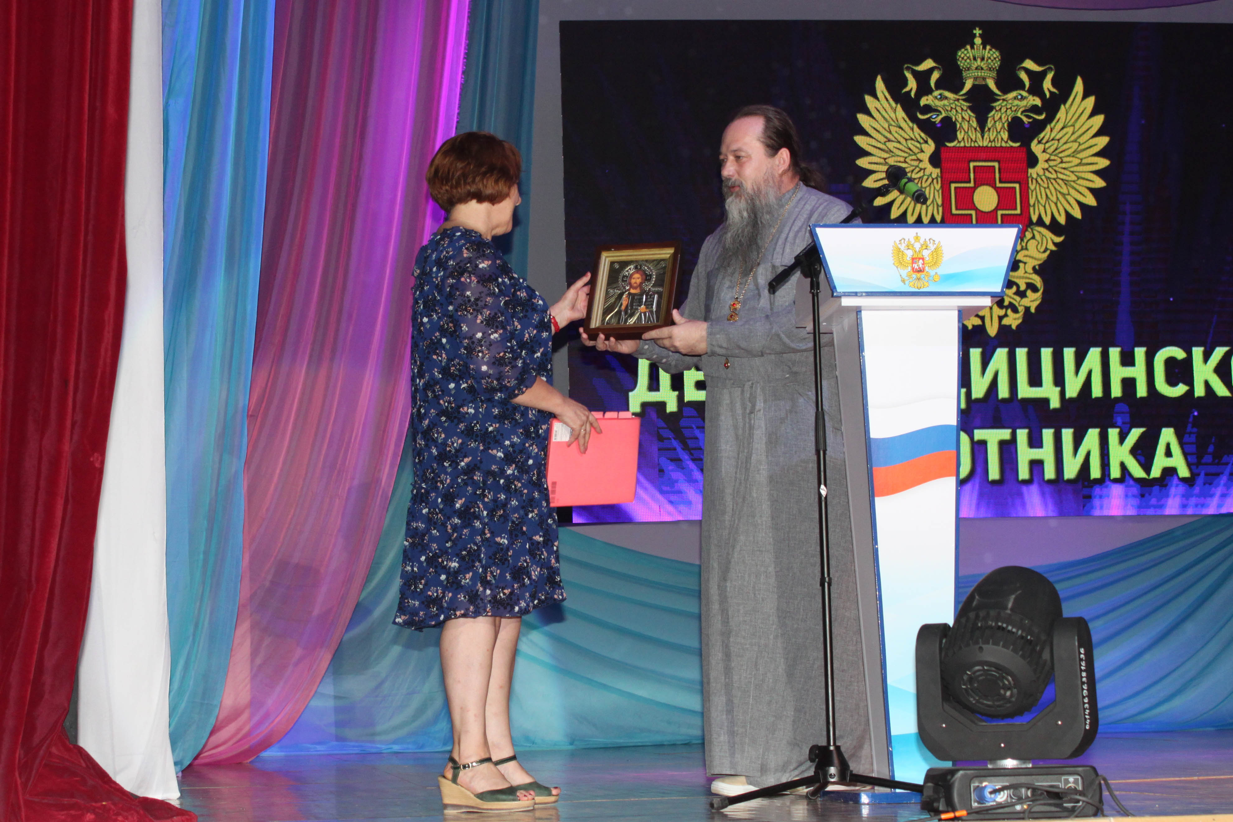 Байконурских медиков с профессиональным праздником поздравил протоиерей православного Храма святого великомученика Георгия Победоносца отец Сергий. Он провел аналогию между докторами и священнослужителями, отметив, что одни лечат тело, другие исцеляют душу. Протоиерей Сергий в качестве подарка вручил и.о. начальника ФГБУ ЦМСЧ №1 ФМБА России Людмиле Ефремовой икону Иисуса Христа.
