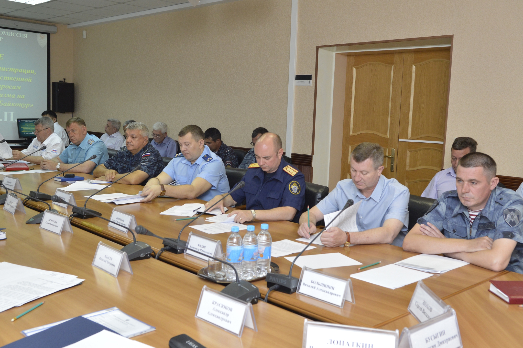 В работе комиссии приняли участие руководители и должностные лица правоохранительных органов, территориальных органов федеральных органов исполнительной власти Российской Федерации, функционирующих на комплексе "Байконур", филиала Госкорпорации "Роскосмос" на космодроме Байконур и администрации города.