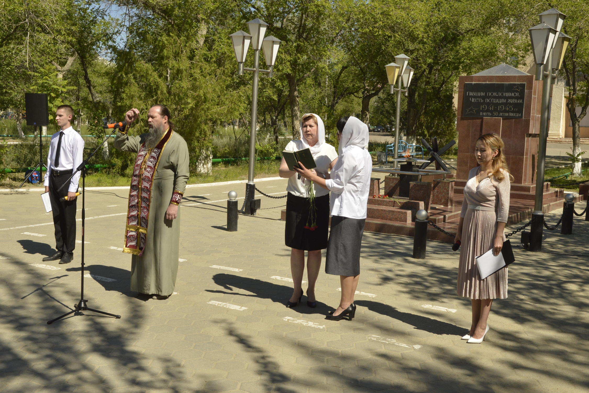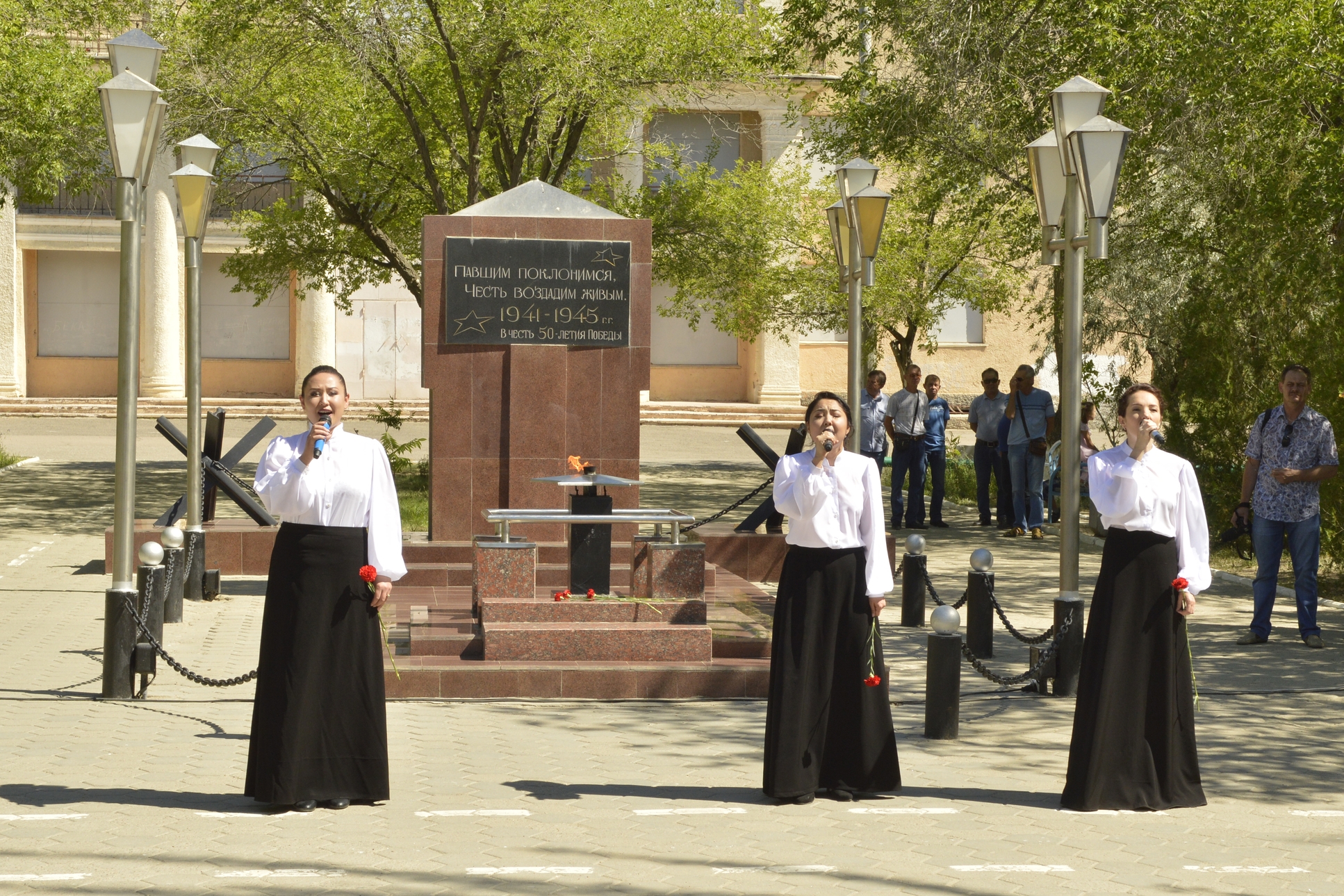 Утром в сквере Победы состоялся митинг и литературно-музыкальная композиция. Почтить память людей, отдавших жизни во имя спасения мира от фашизма, и воздать должное подвигу соотечественников у памятника 50-летию Победы в Великой Отечественной войне собрались представители городской администрации, правоохранительных органов, предприятий и учреждений, общественных организаций "Боевое братство" и "Офицеры России", члены байконурского отряда "Юнармии", молодежь.
