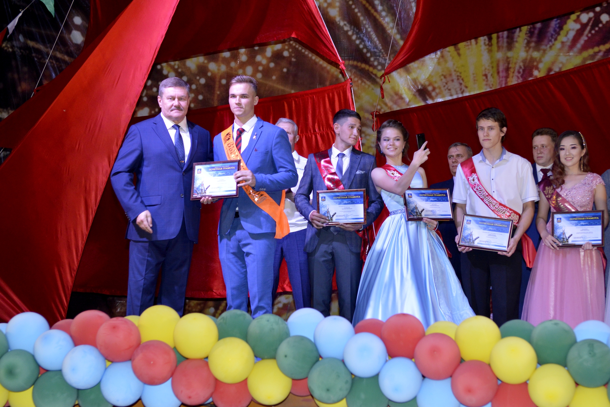Аттестаты о среднем общем образовании с отличием и медали "За особые успехи в учении" получили: Жунку Владислава и Кропанев Иван (средняя школа № 1 им. Г.М. Шубникова), Микалюк Диора (средняя школа № 3 им. С.П. Королева), Арифова Фарида, Голосова Милана, Кожагельдиев Асет, Лобкова Анна (средняя школа № 4 им. В.П. Глушко), Ткаченко Анна (средняя школа №10 им. В.П. Бармина).