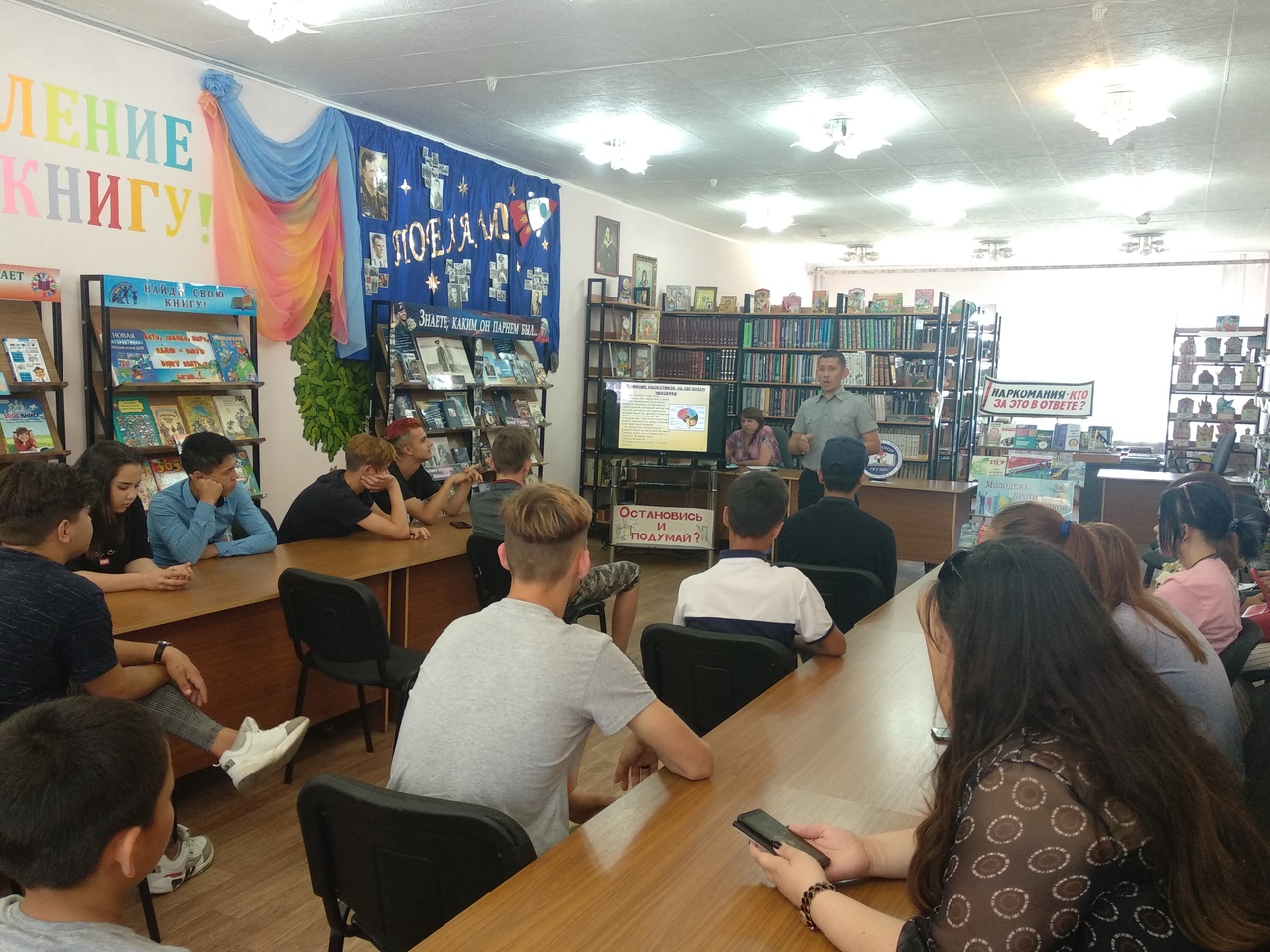 Сотрудники Центральной городской библиотеки, с целью формирования негативного отношения к курению, провели для студентов индустриального техникума познавательный час "Выбираем жизнь без табачного дыма" и организовали выставку "Брось курить - вдохни свободно". В городской детской библиотеке состоялась познавательная беседа "Жизнь без наркотиков" для 17-и несовершеннолетних, состоящих на профилактическом учете. Во время беседы был продемонстрирован фильм "Наркотики. Секреты манипуляции", раскрывающий алгоритм вовлечения подростков в наркотическую зависимость. Врач-нарколог поликлиники № 2 ЦМСЧ №1 Нурбол Алимов рассказал юношам и девушкам о медицинских последствиях употребления алкоголя и наркотиков, а оперуполномоченный группы по контролю за оборотом наркотиков УМВД России на комплексе "Байконур" Сергей Дворовой - о юридической ответственности. В завершении мероприятия библиотекари провели тематический тренинг.