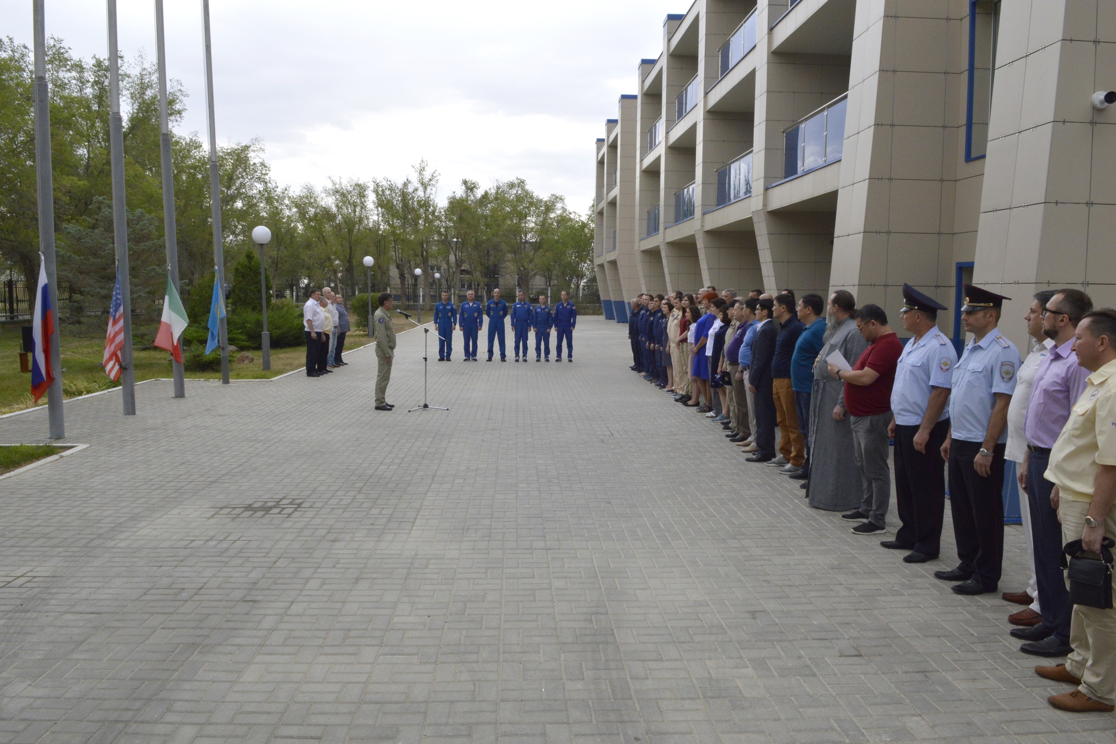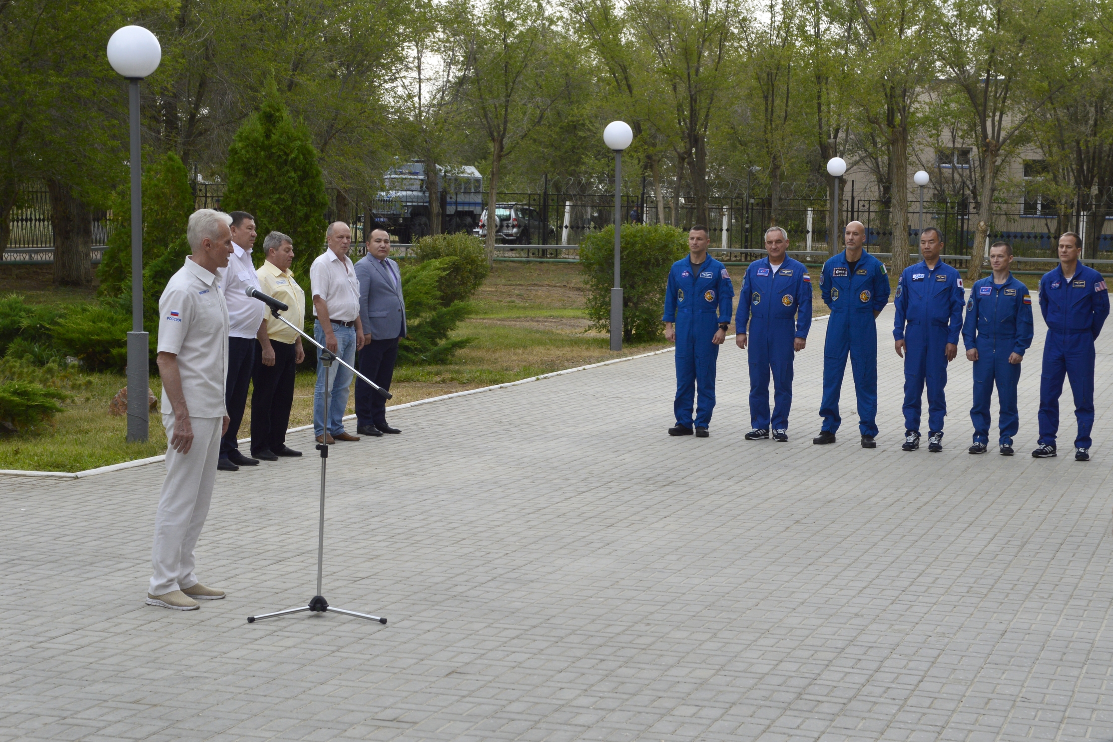 На мероприятии присутствовали представители Госкорпорации "Роскосмос", администрации города Байконура, филиала ФГУП "ЦЭНКИ" - Космический центр "Южный", а также специалисты Центра подготовки космонавтов им. Ю. А. Гагарина, обеспечивающие предстартовую подготовку экипажей.