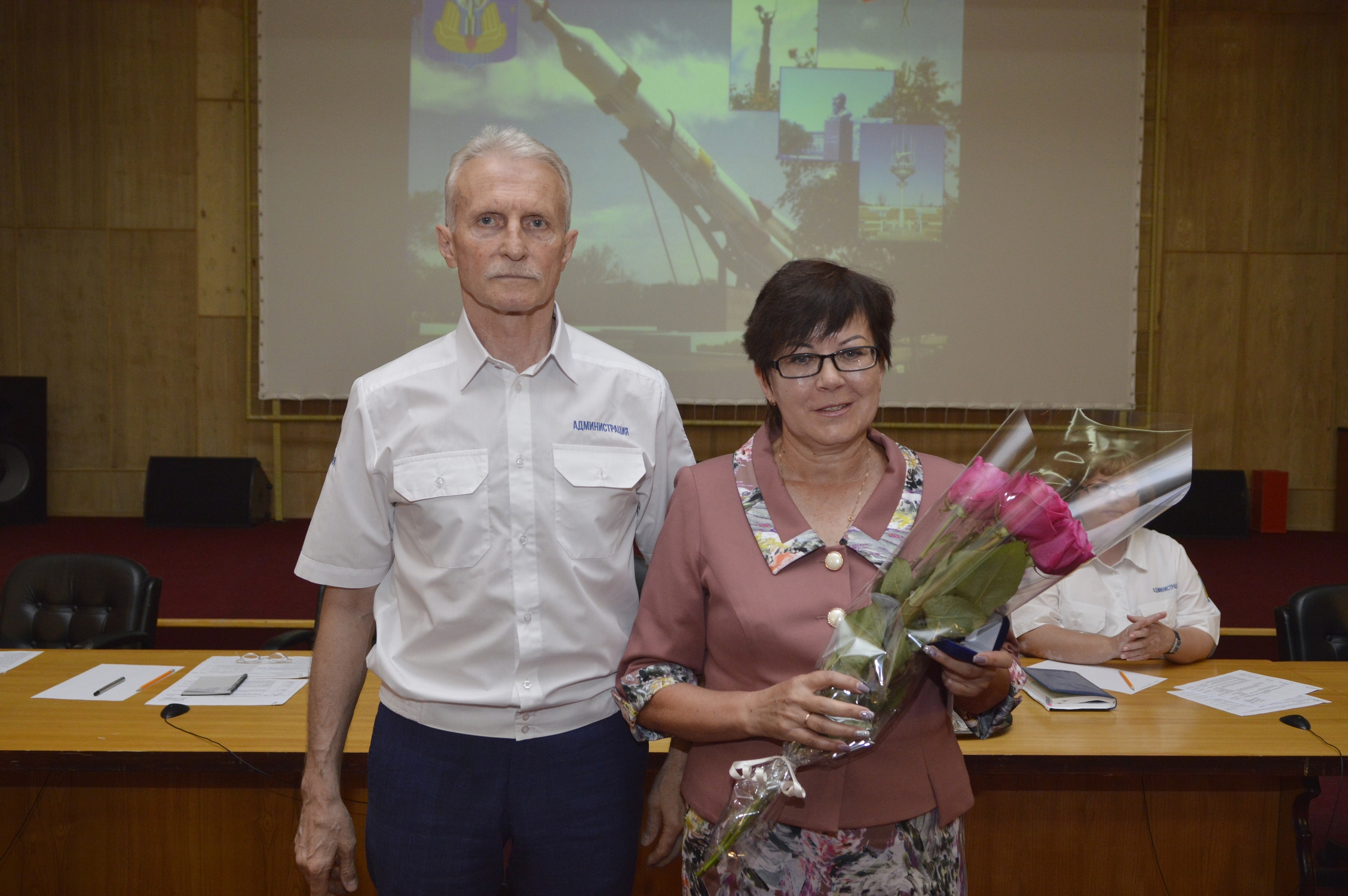 В начале заседания состоялось чествование директора средней школы № 10 Светланы Веселовской: за многолетний добросовестный труд, большой вклад в обучение и воспитание подрастающего поколения и в связи с увольнением она награждена золотым памятным знаком "Байконур".