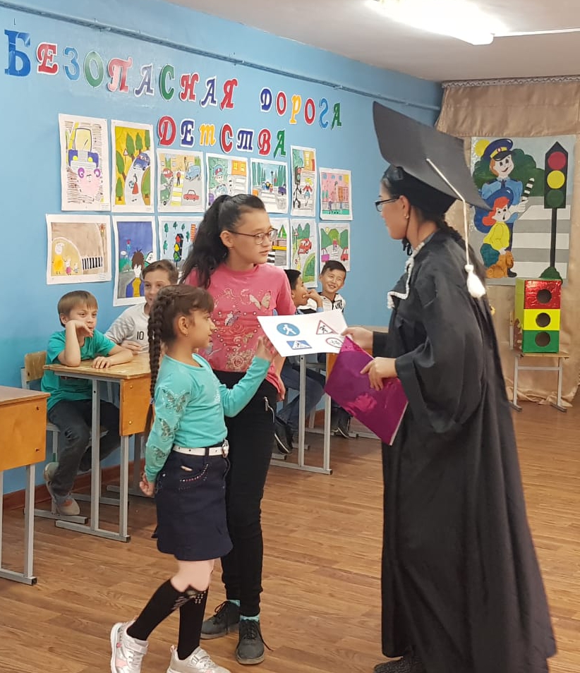 Мероприятие проходило в веселой и непринужденной обстановке. Отправившись в путешествие в страну дорожных знаков, участники мероприятия побывали в «Стране Светофория», где их встретил Светофор Светофорыч (педагог-организатор Гульфизат Мендигараева). Далее ребятам представилась возможность познакомиться с ученым Котом (педагог-организатор Алия Бекмуратова), который познакомил своих гостей со «Страной дорожных знаков». Самой веселой остановкой для путешественников стала «Страна Автомульти» и ее сказочный персонаж Незнайка (педагог-организатор Акгуль Шаламанова). С большим удовольствием ребята приняли участие в конкурсе рисунков «Безопасная дорога детства!».