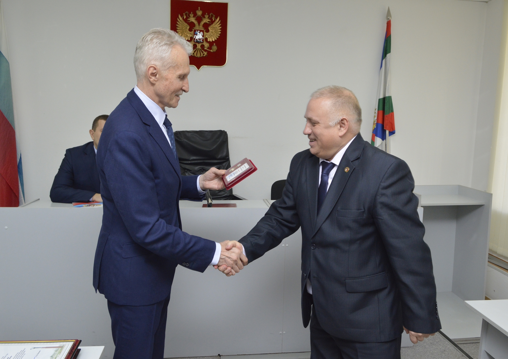 Исполняющий обязанности главы администрации Виктор Лопаткин поздравил работников суда с памятной датой и вручил им заслуженные награды.