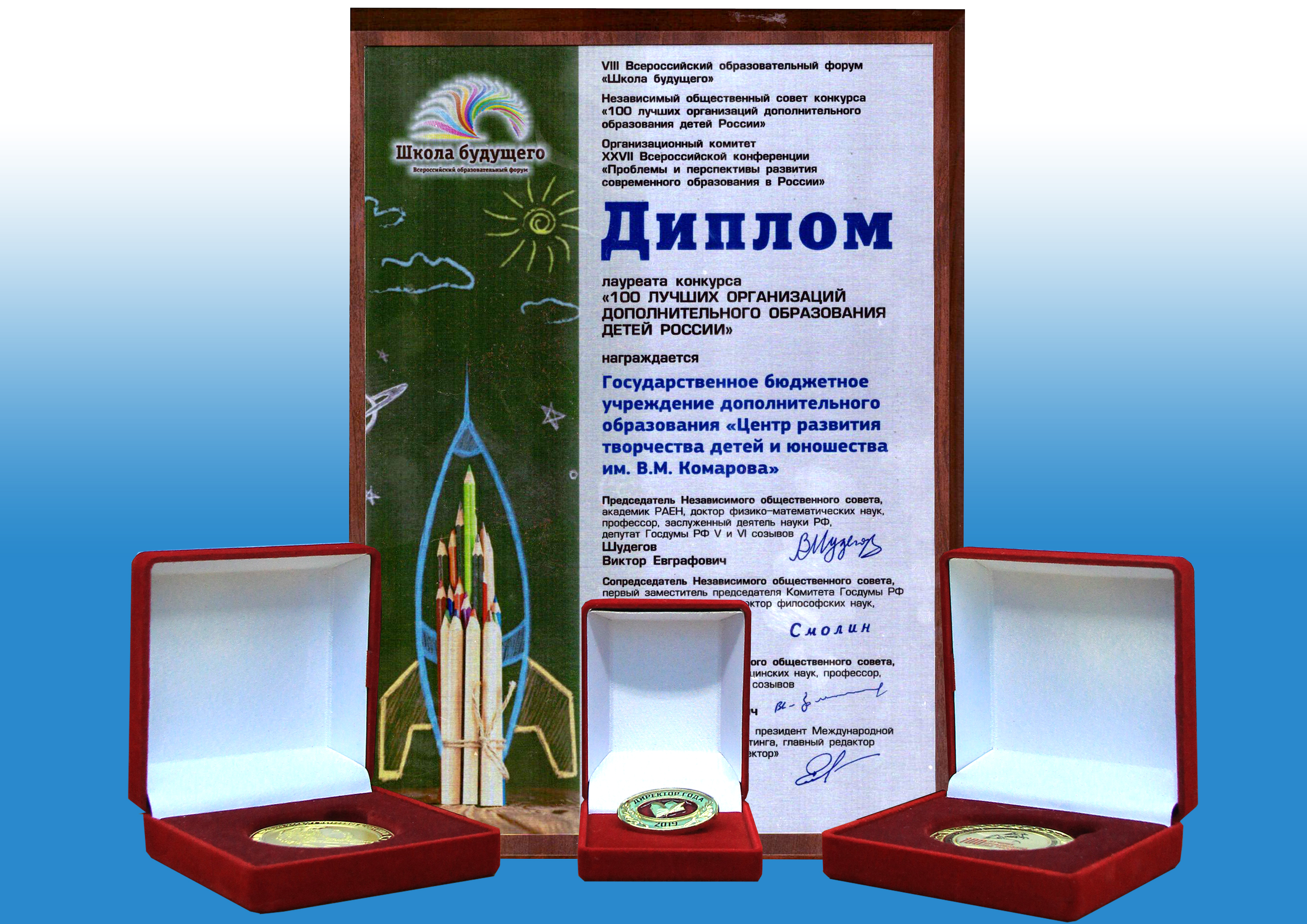 Центр творчества стал Лауреатом конкурса. Учреждению вручена золотая медаль «100 лучших организаций дополнительного образования детей России», которой награждены лучшие учреждения России, добившиеся наиболее высоких результатов и успехов в образовании. Еще одной наградой Центра стала памятная медаль «180 лет со дня рождения М.П. Мусоргского». Директор ЦРТДиЮ Ирина Кузьмина награждена почетным знаком «Директор года –2019».