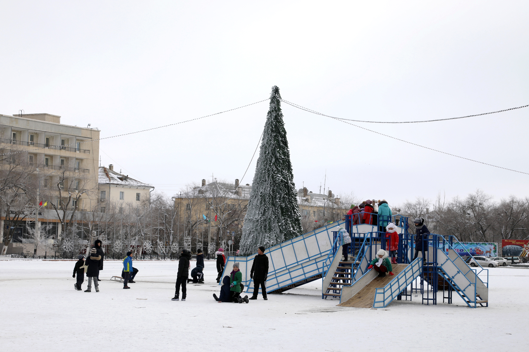 Особо празднично украшена пешеходная зона «Арбат» и площадь Ленина: здесь установлены 15-метровая каркасная светодиодная елка, светодиодные панно, консоли, гирлянды, светящиеся «деревья», иллюминация, растяжки, а также детские горки, пользующиеся большой популярностью у ребят. На улице Янгеля (у магазина «Бастилия») и на бульваре Гагарина (у фонтана «Одуванчик») установлены новогодние елки.