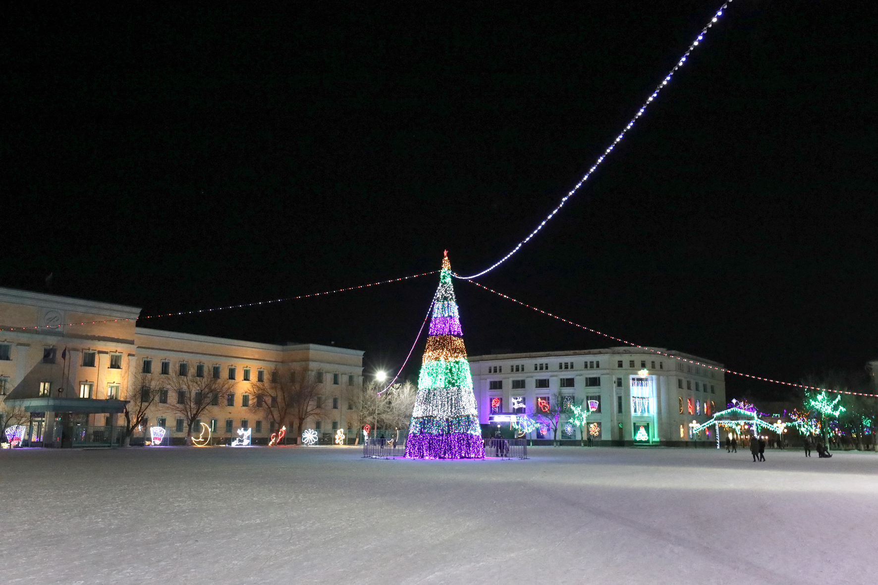 В этом году для праздничного убранства города приобретены гирлянды белт лайт, которые размещены на проспекте Абая.