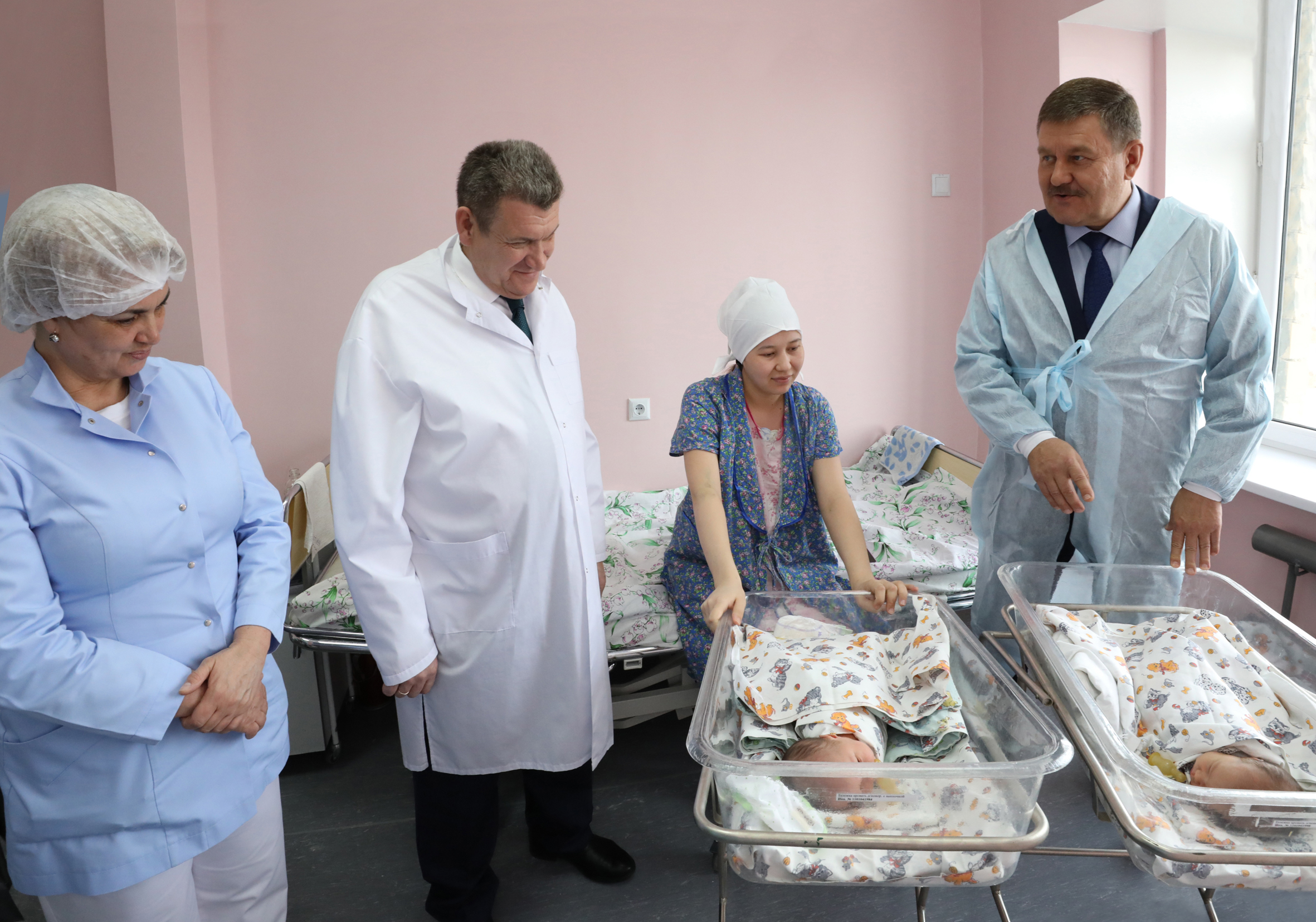 Константин Бусыгин в сопровождении медперсонала осмотрел помещения отделения и навестил рожениц: в отделении сейчас находится семь женщин, у одной из которых родились девочки - близнецы. Глава города побеседовал с женщинами, подарил цветы и преподнес подарки для новорожденных, пожелал им и детям здоровья, а также всего самого наилучшего в жизни.