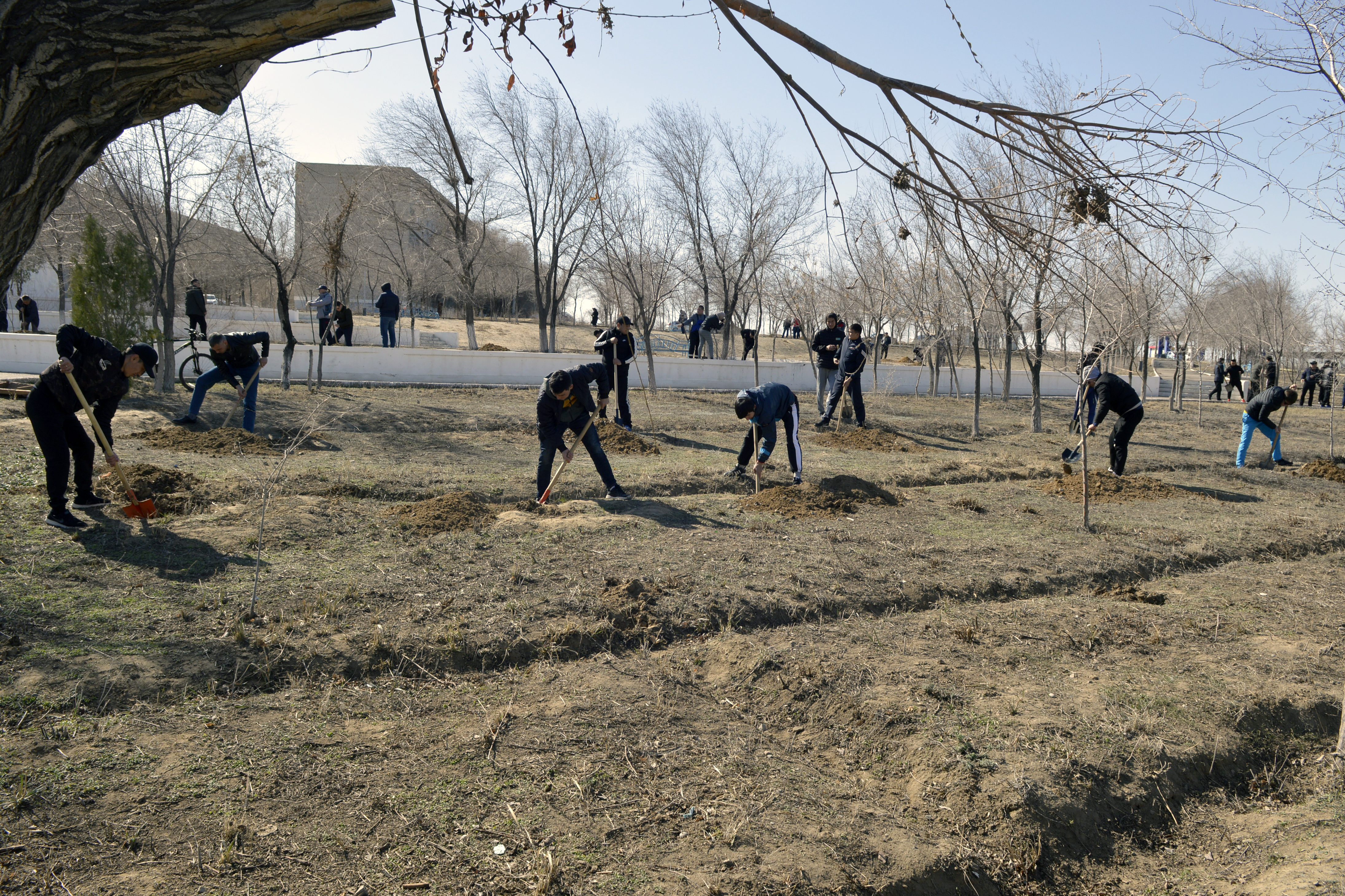Сотрудники Управления образованием города Байконура, Управления социальной защиты населения, Управления культуры, молодежной политики, туризма и спорта и подведомственных им учреждений совместно с работниками управления «Спецзеленстрой» предприятия «Жилищное хозяйство» высадили в сквере около 450 саженцев.