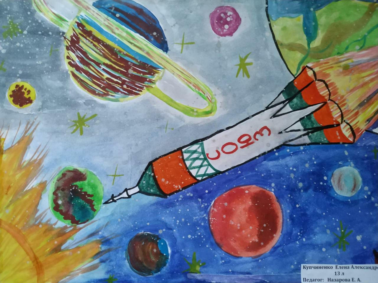 По сообщению Центра творчества, в честь Дня Космонавтики воспитанники образцового хореографического коллектива «Про-движение» (руководитель Елена Антипова) подготовили рисунки на темы: «Летим сквозь пространство», «Космический рок-н-ролл», «Звездный вальс».