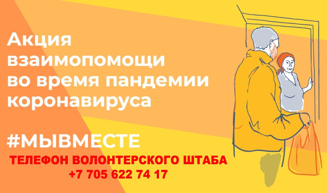 Телефон волонтерского штаба акции «Мы вместе»: +77056227417.