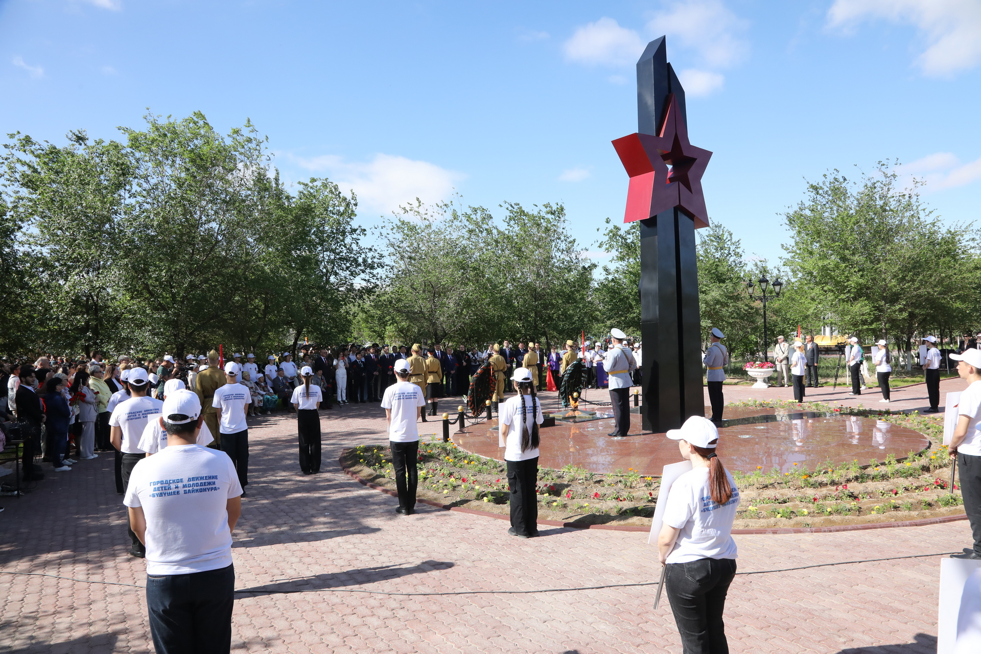 Сегодня утром в городе Байконуре в парке Шубникова у памятника Победы в Великой Отечественной войне состоялся митинг, посвящённый 79-летию великой Победы.