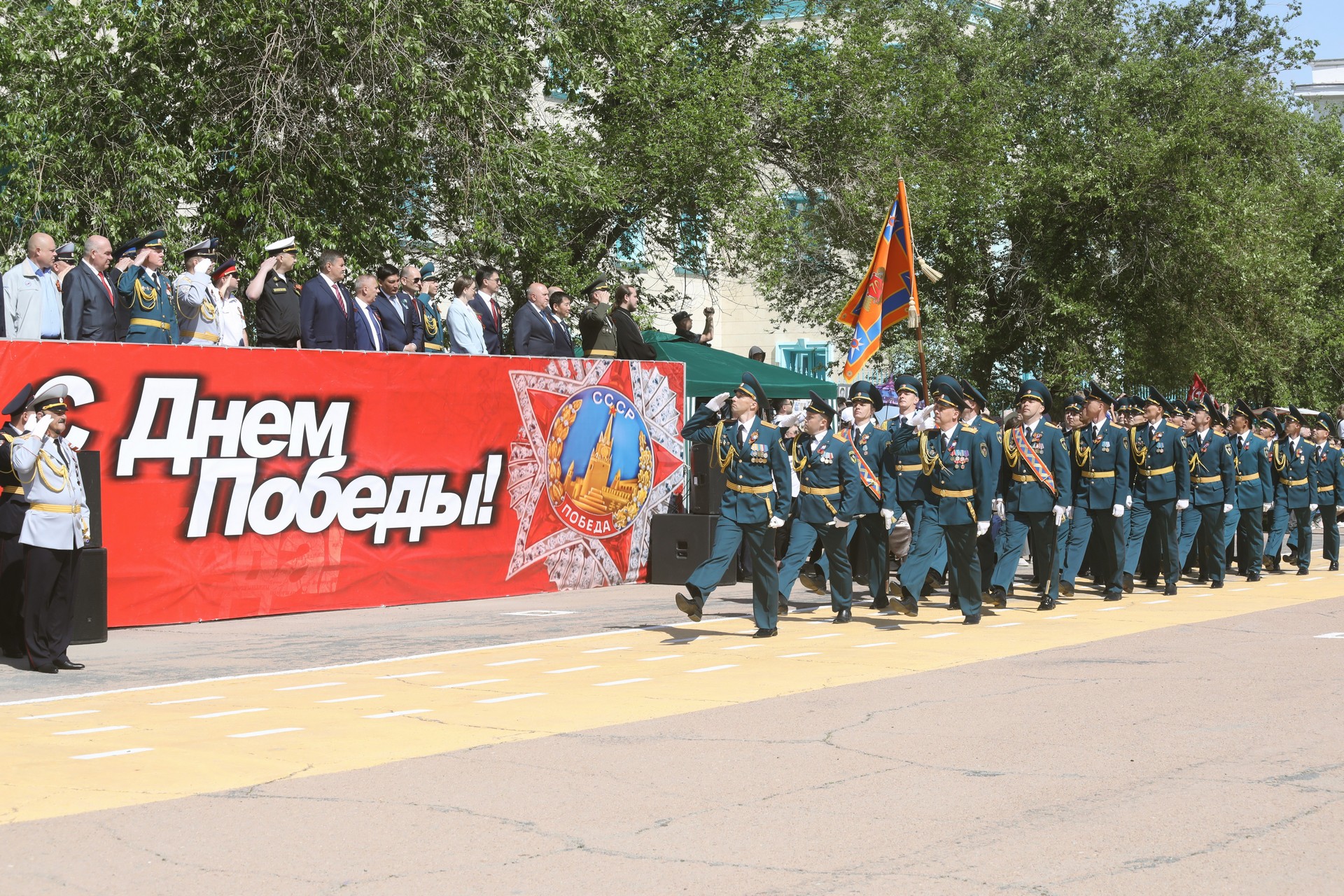 Участников парада приветствовали руководство города и космодрома Байконур, руководители правоохранительных органов, организаций, учреждений и предприятий, представители духовенства, ветераны Великой Отечественной войны-труженики тыла.
