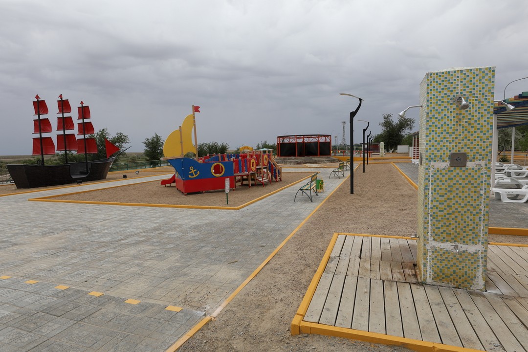 На территории зоны отдыха расположены сероводородный источник, раздевалки и душевые кабины, баскетбольная и волейбольная площадки со специальным покрытием, детские игровые комплексы, стела для фотографирования с надписью «Я люблю Байконур», торговые павильоны. Желающие смогут принять водные процедуры в сероводородном источнике, позагорать, поиграть на спортивных площадках, дети смогут порезвиться на детских игровых комплексах. Зона отдыха работает со вторника по воскресенье с 6 до 22 часов. Понедельник – санитарный день.