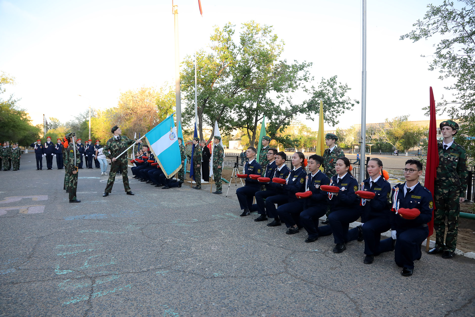 Праздничная церемония началась с торжественного выноса кадетского знамени перед парадным расчётом. После чего каждому выпускнику был вручен нагрудный памятный знак об окончании специализированного кадетского класса.