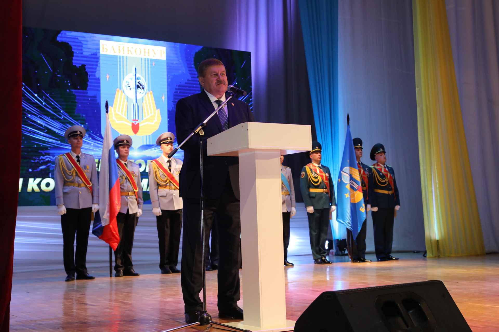 Официальную часть торжества открыл глава администрации города Байконура Константин Бусыгин. Поздравив байконурцев с праздником, глава города отметил: «69 лет для нас, байконурцев – это долгий, тяжёлый, но героический, достойный путь нашего города, космодрома. 69 лет – это целая космическая эпоха, прожитая городом и космодромом. Байконур является самым главным составным звеном космической инфраструктуры в сотрудничестве между Казахстаном и Россией в освоении космоса». Константин Бусыгин поблагодарил ветеранов за самоотверженный труд и выразил благодарность жителям, которые активно участвуют в жизни города и направляют свои помыслы и дела на развитие космической гавани. В завершение своей речи Константин Бусыгин пожелал горожанам мира, благополучия и счастья.