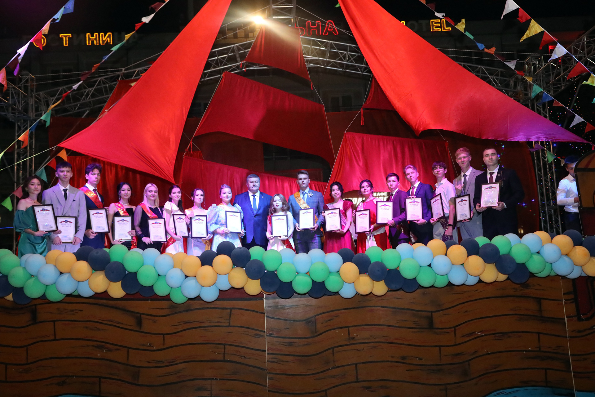 Для награждения почётными грамотами на главную сцену были приглашены ребята, которые достигли больших успехов в спортивной, общественной и научной деятельности, образовательных и культурных мероприятиях, олимпиадах по учебным предметам, творческих конкурсах.