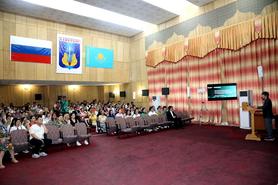 26 июня в городе Байконуре Российское общество «Знание» при поддержке городской администрации провело мероприятие для байконурских служащих. Форум прошёл в рамках проекта Знание.Государство, который уже два года помогает служащим и сотрудникам органов власти получать актуальные сведения об истории, экономике, достижениях России и развивать профессиональные навыки. Встреча охватила более 250 участников, среди которых заместители главы администрации, начальники управлений, сотрудники отделов, руководители предприятий и учреждений.