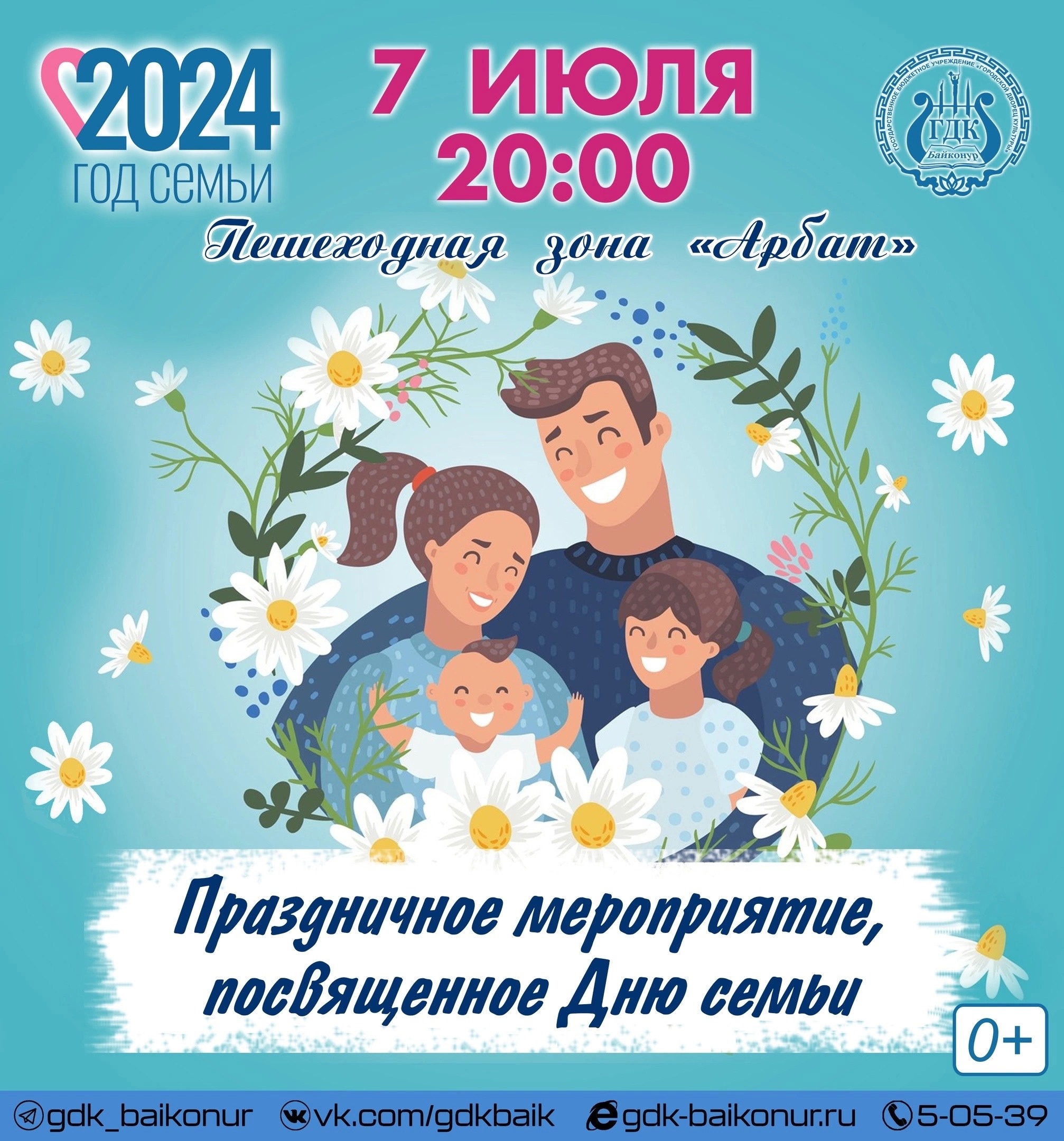7 июля на пешеходной зоне «Арбат» состоится праздничное мероприятие, посвящённое Всероссийскому дню семьи, любви и верности. Начало в 20:00. Приглашаем жителей и гостей города принять участие.