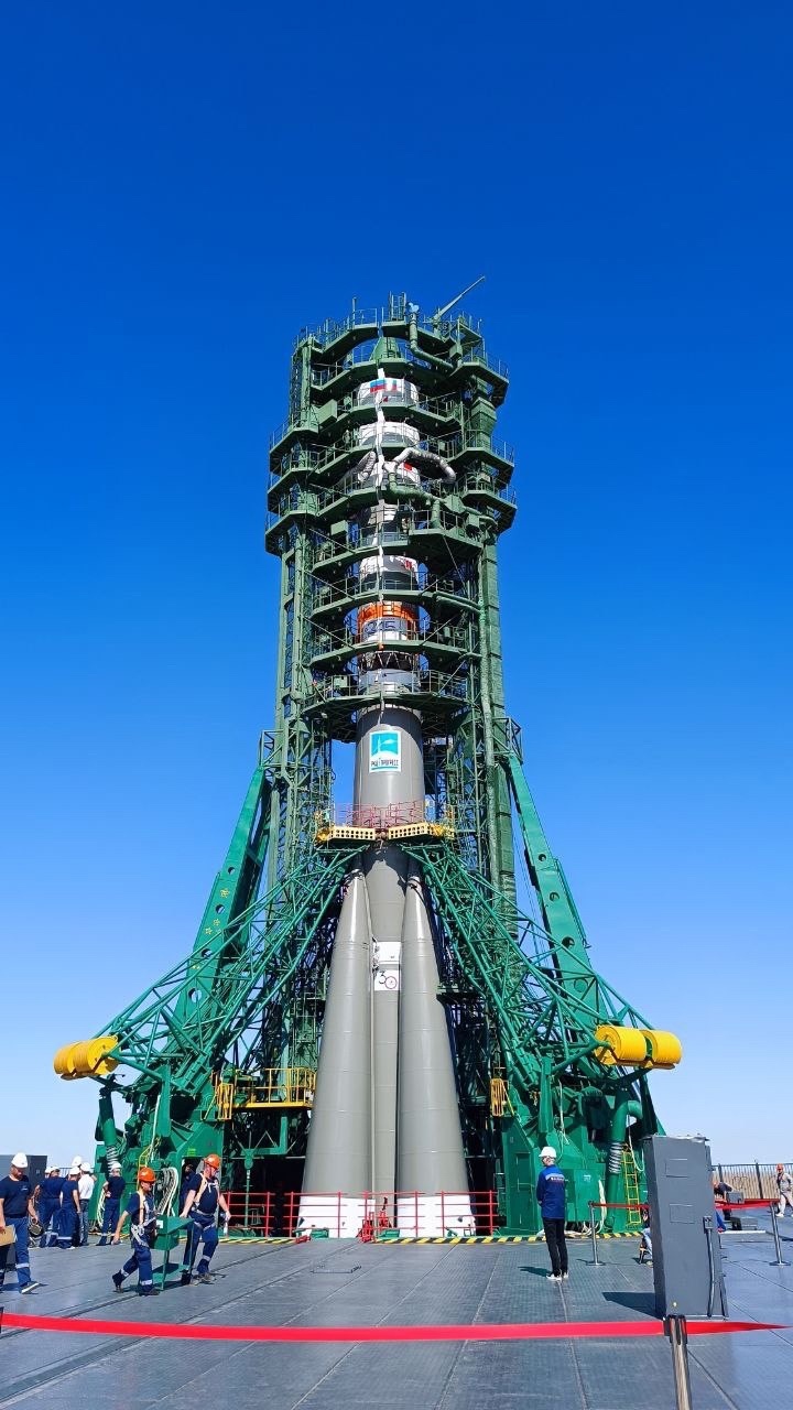 После установки ракеты в вертикальное положение на стартовом комплексе специалисты предприятий Госкорпорации «Роскосмос» продолжили её подготовку к пуску.