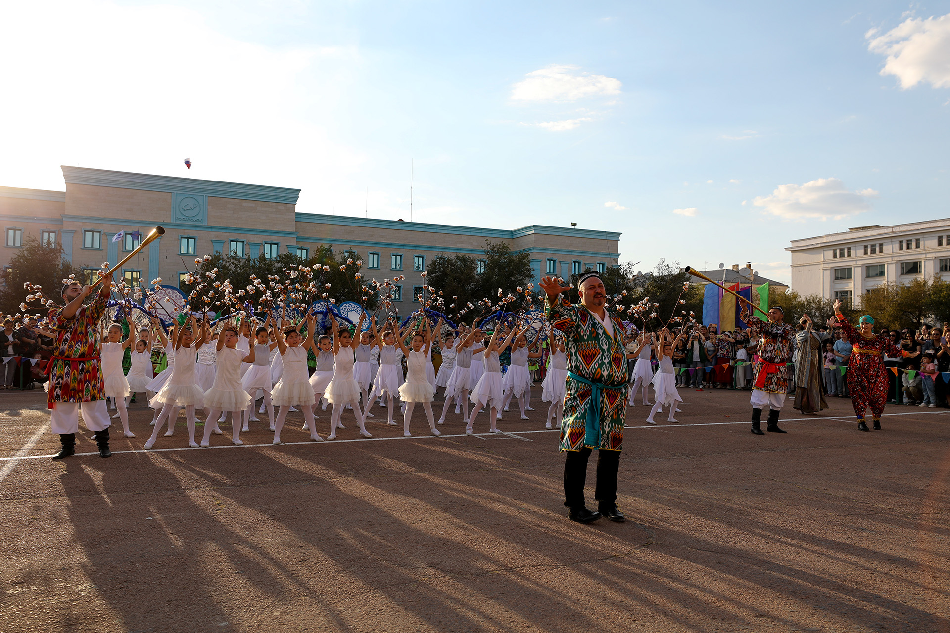 На площади выстроились более пятисот участников фестиваля, которые представили 12 народностей. В традиционных костюмах русских, казахов, абхазцев, белорусов, грузин, арабов, таджиков, турок, узбеков, чеченцев, татар, мордвы продефилировали гости из Регионального отделения общероссийского общественно-государственного движения детей и молодёжи «Движение первых» Свердловской области (г. Екатеринбург), Республики Татарстан (г. Казань), Республики Абхазии, Кызылорды, участники XXVII Международных соревнований «Кубок космодрома Байконур» по ракетомодельному спорту среди юношей и взрослых, прибывших из России, Беларуси, Казахстана, Кыргызстана, Узбекистана и Таджикистана, а также представители байконурских образовательных учреждений: дошкольных организаций, средних школ 1, 3, 4, 7, 10, начальной школы 15, лицея МКШ, БИТ, БЭРТТ, ЦРТДиЮ, детских музыкальных школ 1 и 2, детской художественной школы, отдела образования по Кармакшинскому району, Филиала АО «ЦЭНКИ» – КЦ «Южный», ГДК, ГУП ПЭО «Байконурэнерго», Централизованной библиотечной системы, ООО «Профи-софт», «Хлебзавод №1» и команды предпринимателей города Байконура.