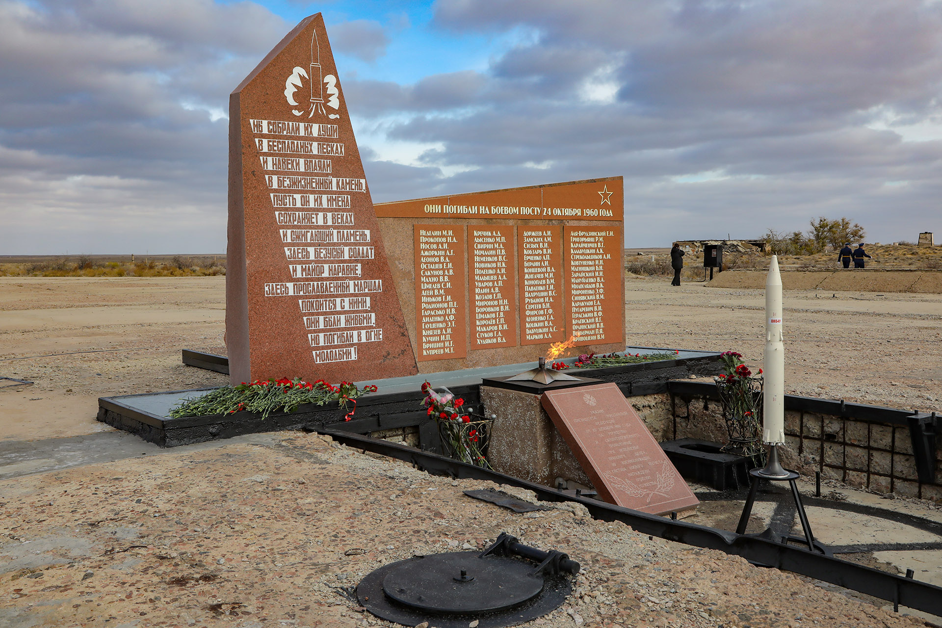 Траурные мероприятия прошли также на месте гибели испытателей – на стартовом комплексе ракеты Р-16 на 41-й площадке космодрома, и около памятника конструктору Михаилу Янгелю на 42-й площадке космодрома Байконур.