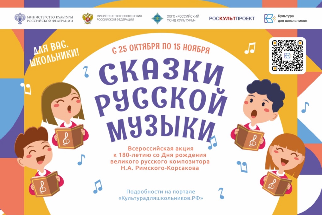 С 25 октября по 15 ноября в рамках межведомственного культурно-образовательного проекта «Культура для школьников» пройдёт Всероссийская акция к 180-летию со Дня рождения великого русского композитора Н.А. Римского-Корсакова.
