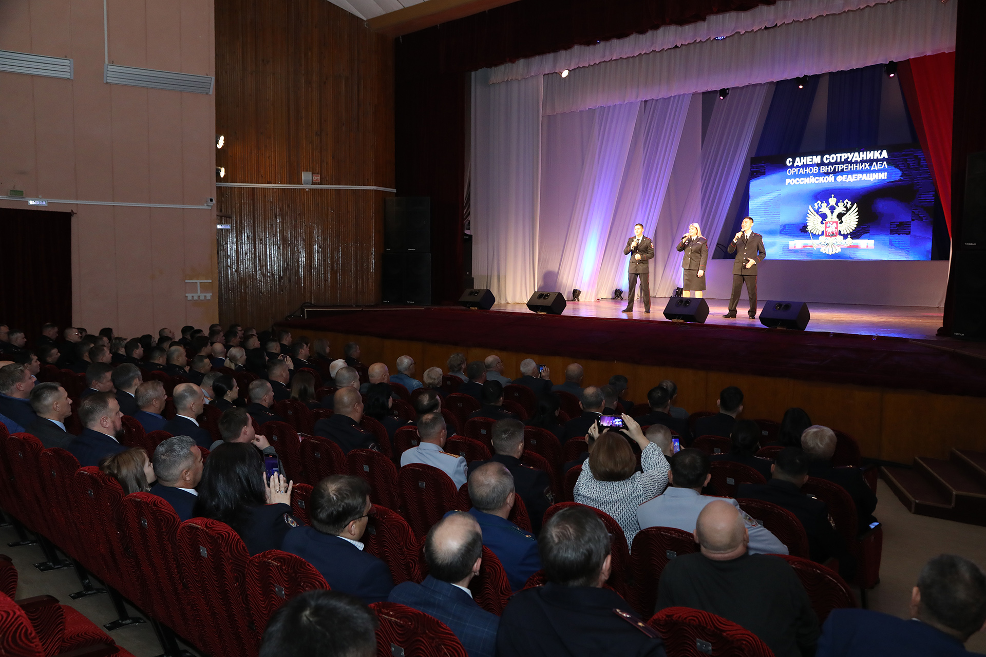 9 ноября в Городском Дворце культуры состоялось праздничное мероприятие, посвящённое Дню сотрудника органов внутренних дел Российской Федерации. Глава администрации города Байконура Константин Бусыгин поздравил сотрудником УМВД России на комплексе «Байконур» с профессиональным праздником. «Благодарю вас за ответственность и настойчивость в преодолении трудностей профессиональной деятельности. При поддержке со стороны общества вы с честью выполняете поставленные перед вами задачи. Жители города благодарны вам за спокойствие на улицах, за то, что в любое время суток наш город безопасен. Особые слова благодарности выражаю ветеранам, которые верой и правдой служили народу, с честью и достоинством выполняли свой конституционный, служебный долг. Ваша служба в ОВД считается примером для нынешнего молодого поколения сотрудников полиции. Желаю всем мирного неба, спокойной работы. Берегите себя», - обратился к присутствующим Константин Бусыгин.