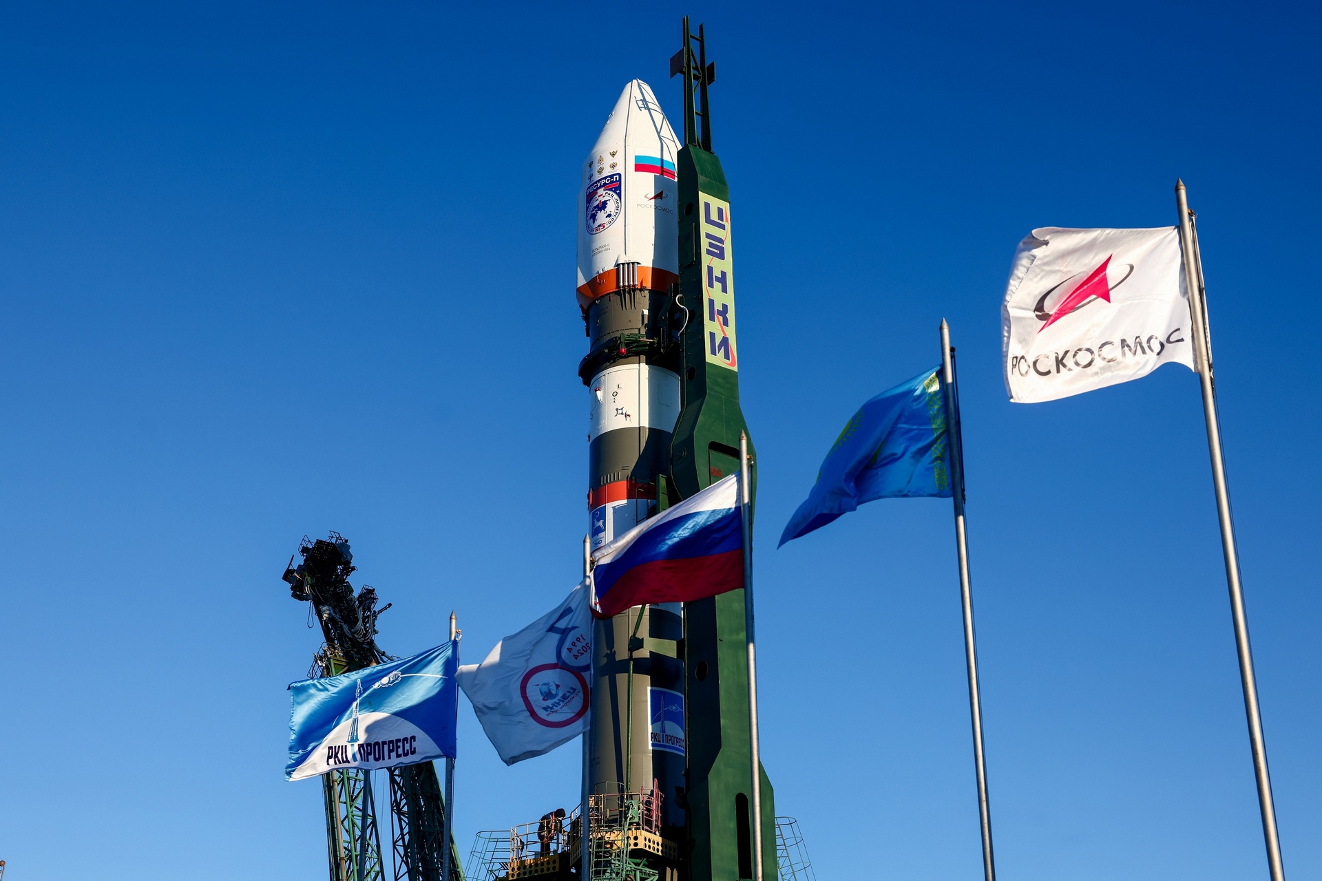 После установки ракеты в вертикальное положение на стартовом комплексе специалисты предприятий Госкорпорации «Роскосмос» продолжили её подготовку к пуску.