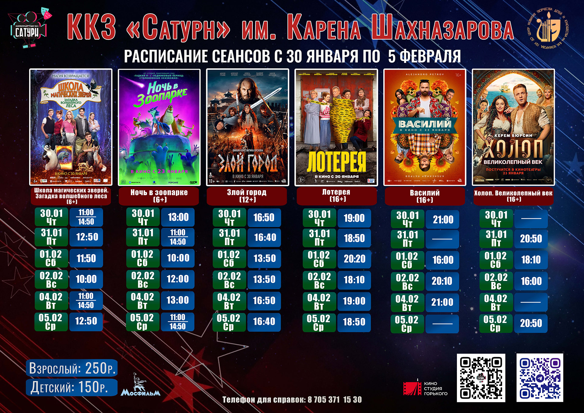 29.01.2025  Киноконцертный зал «Сатурн» приглашает жителей и гостей города на просмотр фильмов