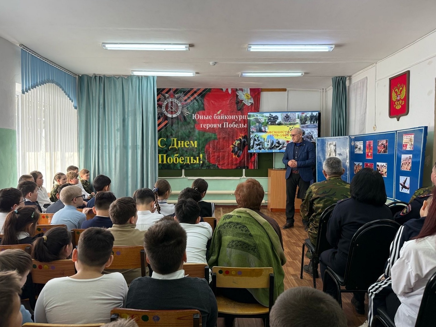 17 февраля в Байконурском индустриальном техникуме студентам была показана литературно-музыкальная композиция «Афганистан – живая память», посвящённая 36-й годовщине вывода советских войск из Афганистана. Студенты – активисты городского движения «Будущее Байконура», члены молодёжной общероссийской общественной организации «Российские студенческие отряды» – подготовили историческую программу с кадрами документальной кинохроники, декламацией стихотворений и исполнением песен, посвящённых подвигу воинов-интернационалистов. На мероприятии присутствовали почётные гости: начальник штаба регионального отделения Общероссийской общественной организации «Офицеры России» на комплексе «Байконур» подполковник запаса Сергей Рыбин, помощник руководителя сектора по взаимодействию с ветеранами боевых действий Байконурского регионального отделения Всероссийской организации ветеранов «Боевое братство», участник боевых действий в Афганистане Умбет Тажимбетов, члены общественного объединения «Совет ветеранов войны в Афганистане Байконурского региона» Мархабай Сандыбаев и Нуртай Журманов – воины-афганцы, исполнившие свой интернациональный долг. Также гостям мероприятия была представлена книжно-иллюстрационная выставка «Афганистан: без права на забвение», подготовленная сотрудниками ГКУ «Централизованная библиотечная система» Жанар Боранбаевой и Санией Козыбаховой. На выставке были представлены художественные и документальные произведения, а также материалы страниц периодических изданий, рассказывающие об истории войны в Афганистане, её причинах и последствиях, о суровых боевых испытаниях воинов, выполнявших свой интернациональный долг.
