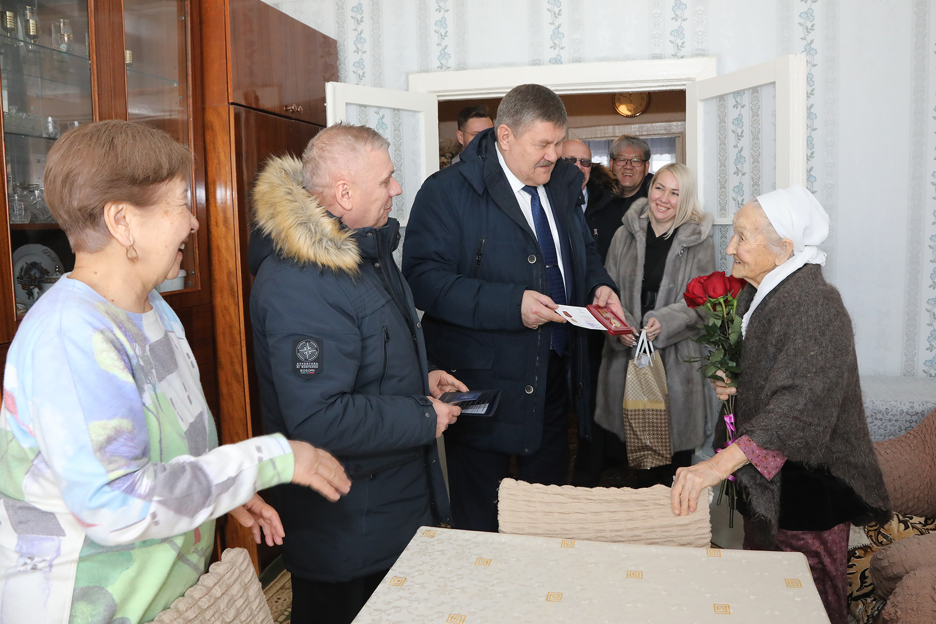 В преддверии Международного женского дня 8 марта, глава администрации города Байконур Константин Бусыгин посетил ветерана Великой Отечественной войны – труженицу тыла Тютебаеву Туле Науановну и вручил ей юбилейную медаль «80 лет Победы в Великой Отечественной войне 1941-1945 гг.», учрежденную Президентом Российской Федерации.