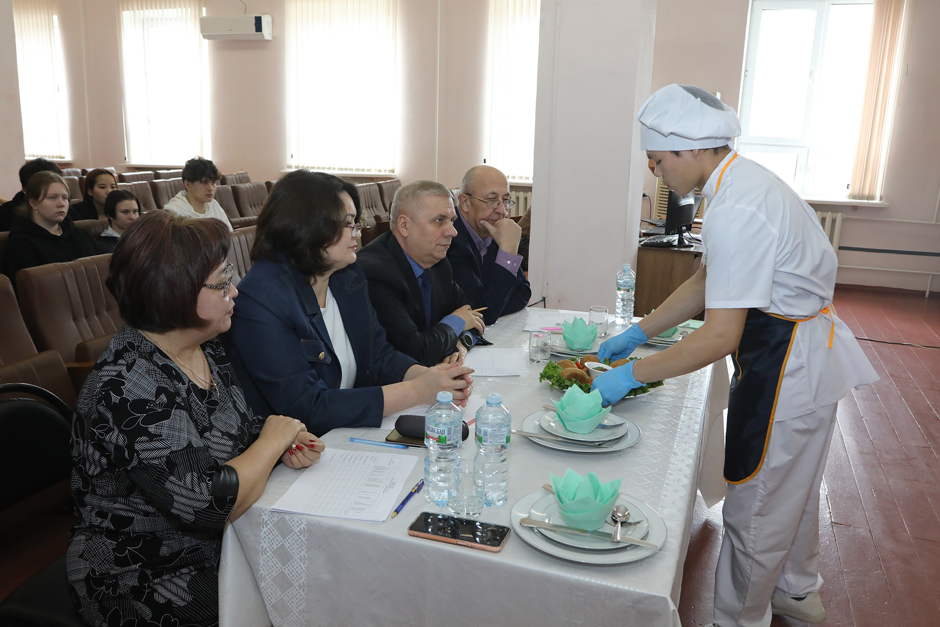 В ходе конкурсных испытаний учитывались правильность трудовых приёмов, технологическая грамотность ведения работ, время выполнения заданий, соблюдение требований охраны труда и техники безопасности, а также органолептическая оценка блюд. Яркие, аппетитно и креативно украшенные конкурсные блюда получили высокую оценку строгого жюри, в состав которого входили: заместитель главы городской администрации Николай Адасёв, главный технолог государственного бюджетного учреждения «Хлебзавод №1» Елена Капралова, директор техникума Ахмед Эюбов и и.о. заместителя директора Гулбану Ембергенова.