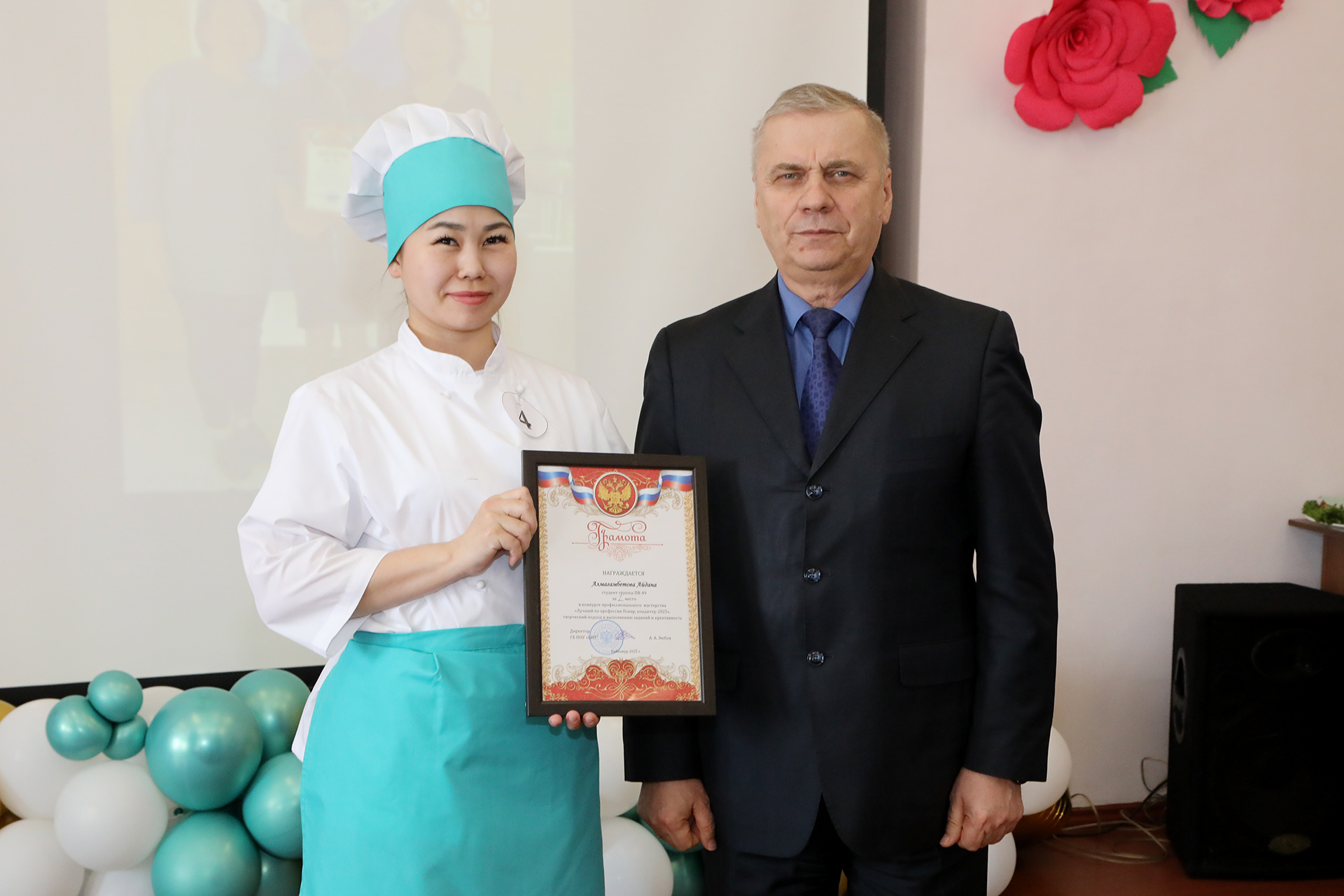 По единогласному решению жюри места распределились следующим образом. 3 место занял студент группы ПВ-39 Берекет Токсамбаев. 2 место разделили между собой студенты группы ПВ-49 Сыргаш Айбосынова, Анастасия Березовская и студент группы ПВ-39 Артур Поздеев. Победителями конкурса профессионального мастерства «Лучший по профессии Повар, кондитер 2025» стали студентка группы ПВ-49 Айдана Алмагамбетова и студент группы ПВ-39 Егор Югай. Итоги конкурса показали отличный уровень профессиональных компетенций конкурсантов. Члены жюри единодушно отметили творческий подход к выполнению заданий, стремление к победе, заинтересованность конкурсантов в профессиональном росте.
