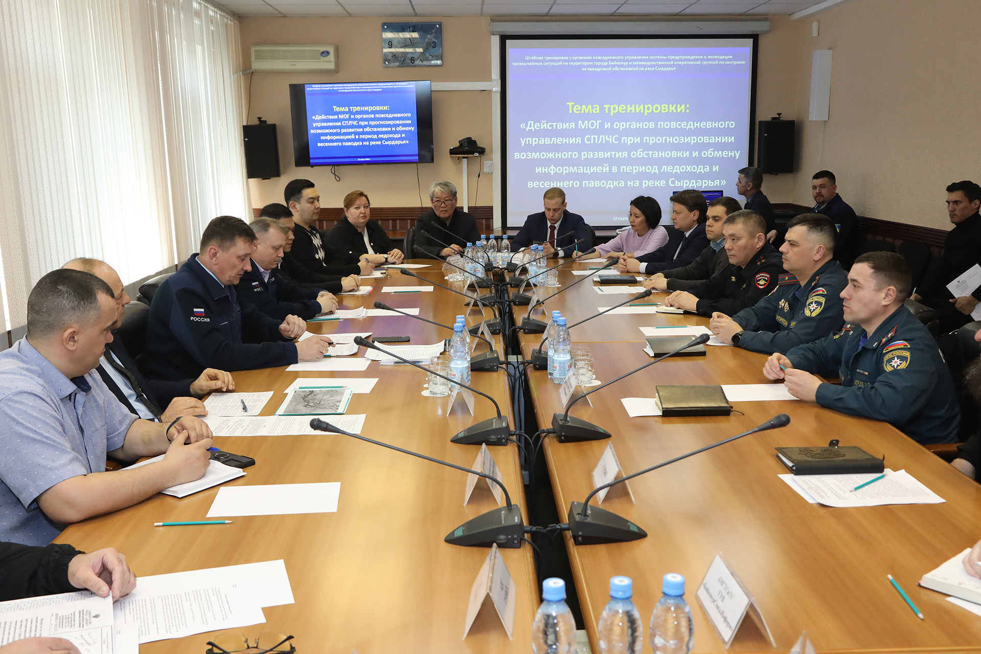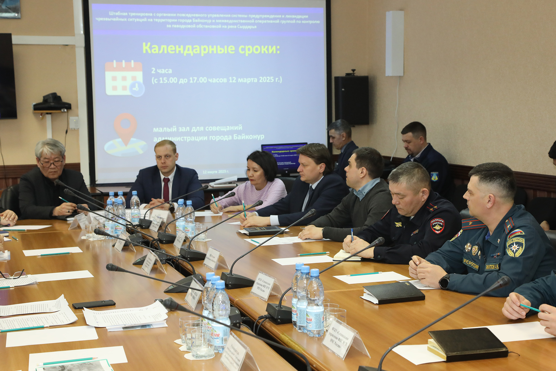 12 марта в соответствии с Планом основных мероприятий администрации города Байконура по вопросам предупреждения и ликвидации чрезвычайных ситуаций и обеспечения пожарной безопасности людей на водных объектах на 2025 год, в городской администрации, под руководством начальника отдела территориальной безопасности Управления безопасности и режима администрации города Байконур Дениса Денисова, проведена штабная тренировка с межведомственной оперативной группой по контролю за паводковой обстановкой на реке Сырдарья (МОГ) и органами повседневного управления системы предупреждения и ликвидации чрезвычайных ситуаций на территории города Байконур (СПЛЧС) по теме: «Действия МОГ и органов повседневного управления СПЛЧС при прогнозировании возможного развития обстановки и обмену информацией в период ледохода и весеннего паводка на реке Сырдарья».