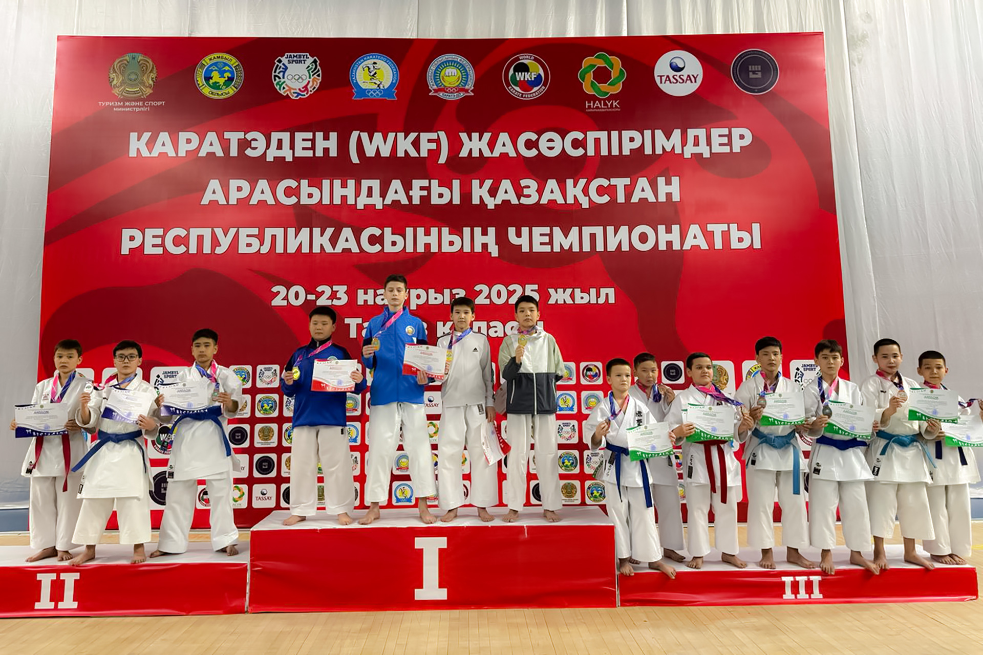 В индивидуальном ката золотые медали завоевали Зара Кулаева и Айкын Жаксылыков. В командном ката первое место заняли Айжан Абдигазиева, Каракат Тоиымбетова, Зара Кулаева, Айару Бауыржанова. Серебряным призером в индивидуальном ката стал Рамазан Балтабаев. В командном ката серебро завоевали Аруназ Бауржанова, Еркеназ Бауржанова, Керемет Абилова, Аяна Медеткызы, Альмир Ерлеров, Ансар Сапарбай, Абилмансур Бердалы. Бронзовым призером в индивидуальном ката стал Каракат Тоиымбетова. В командном ката третье место заняли Мадияр Капин, Рамазан Балтабаев, Айкын Жаксылыков, Санжар Асанов.