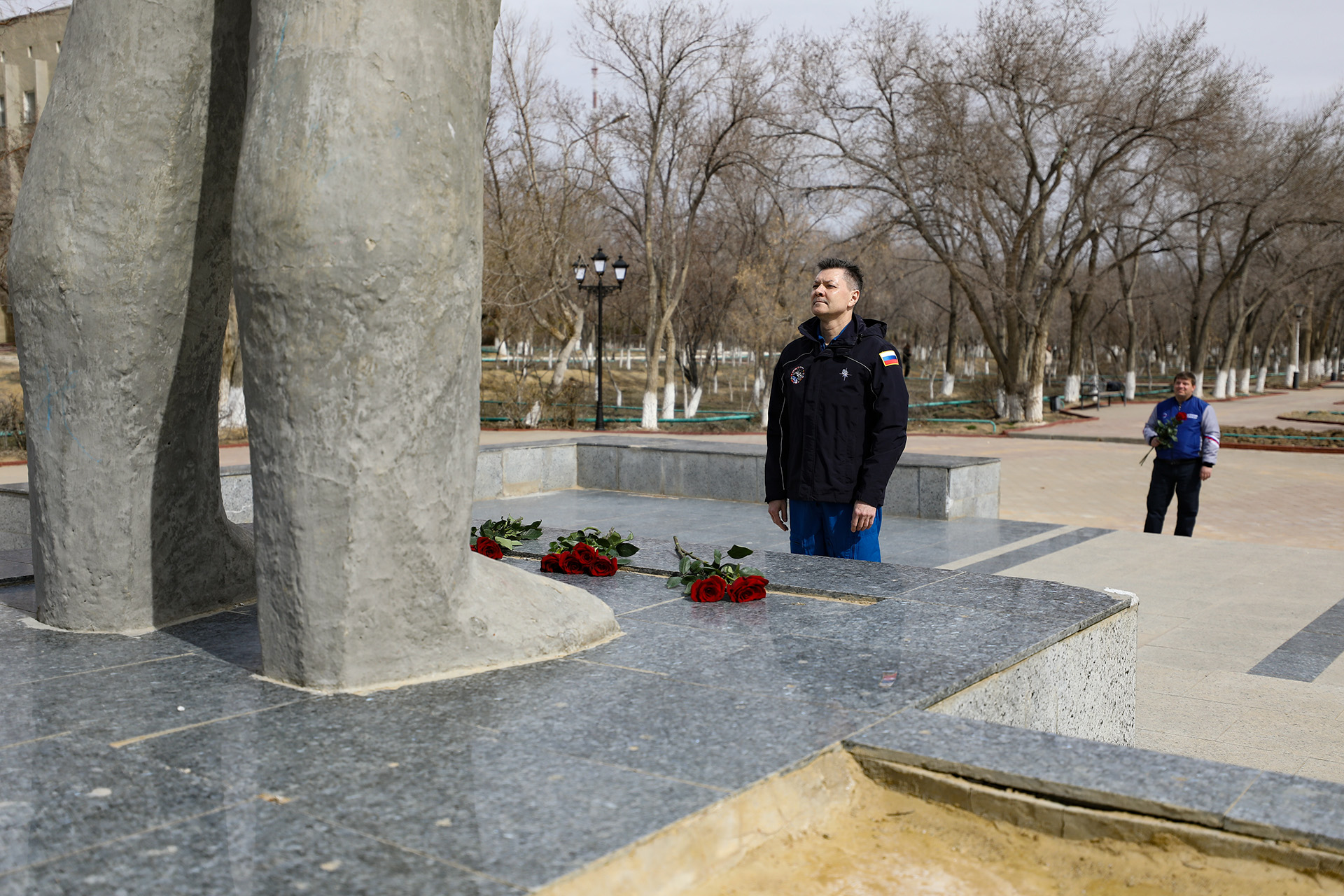 Цветы к памятнику легендарному космонавту возложил Герой России, лётчик-космонавт Российской Федерации, командир отряда космонавтов Олег Кононенко. Дань памяти первопроходцу космоса отдал дублирующий экипаж МКС-73 российские космонавты Сергей Кудь-Сверчков и Сергей Микаев, а также астронавт NASA Кристофер Уильямс. От имени оперативной группы Центра подготовки космонавтов, цветы к памятнику космонавту возложил Алексей Спектор.