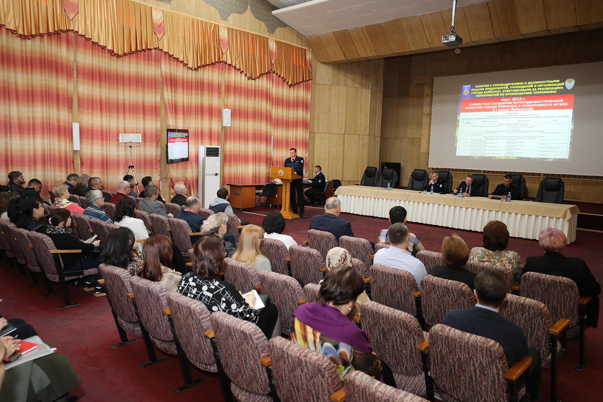 27 марта в администрации города Байконура, в рамках реализации мероприятий Плана работы Антитеррористической комиссии города Байконура (АТК) на 2025 год, проведены учебно-методические сборы (занятия) с руководителями и должностными лицами предприятий, учреждений и организаций города в области профилактики терроризма.