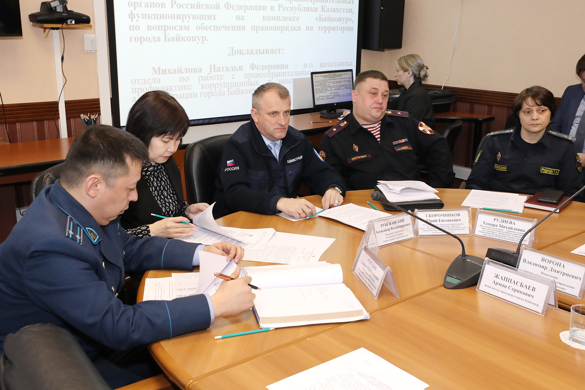 В заседании приняли участие руководители правоохранительных и других государственных органов Российской Федерации и Республики Казахстан, функционирующих на комплексе «Байконур», руководство городской администрации и подведомственных ей предприятий и учреждений.