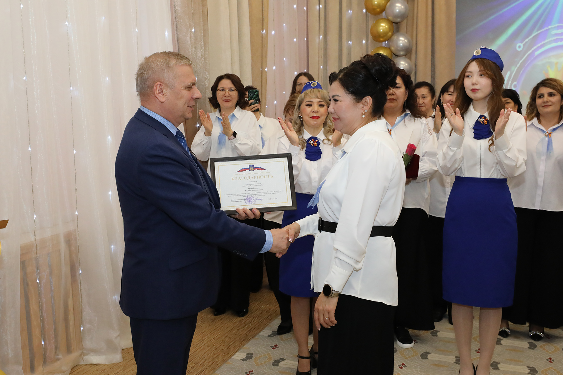 Профессиональное мастерство, безграничная любовь к детям, выдающиеся заслуги в деле обучения и воспитания подрастающего поколения были отмечены заслуженными наградами главы администрации города Байконура – многие сотрудники детского сада были награждены медалями, почётными грамотами и благодарностями главы города.