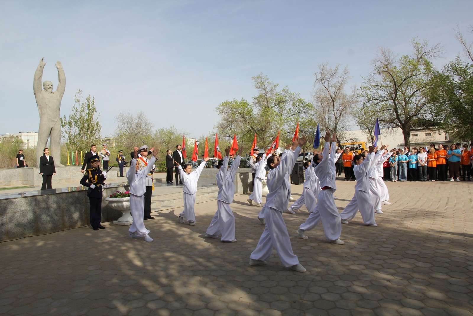 В продолжение мероприятия для байконурцев и гостей города была представлена литературно-музыкальная композиция, подготовленная коллективом Центра развития творчества детей и юношества имени В.М. Комарова. Традиционно учащиеся Лицея МКШ им. В.Н. Челомея провели запуск моделей ракет – как символ стремления к новым достижениям и уважения к истории отечественной космонавтики. В заключение митинга к памятнику первому космонавту планеты были возложены цветы.