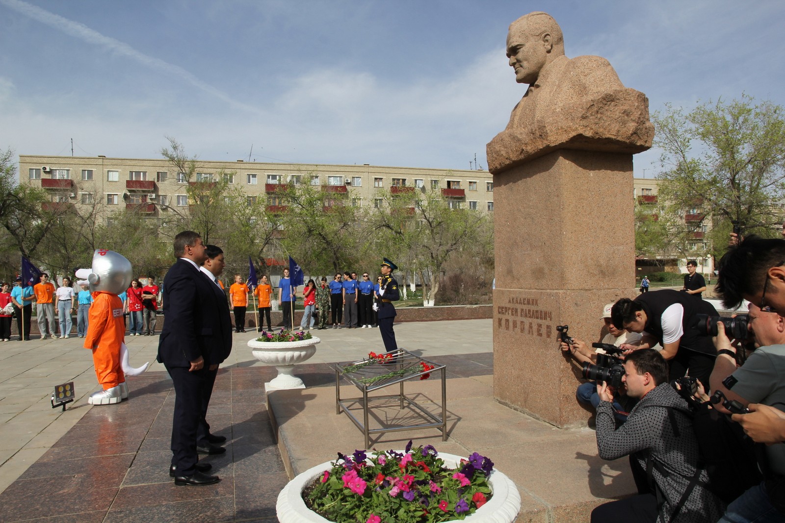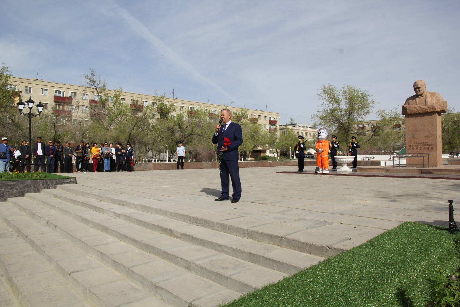 Открывая митинг, глава администрации города Байконура Константин Бусыгин обратился к участникам с поздравительной речью, отметив, что 12 апреля 1961 года ознаменовало начало новой эры — эпохи пилотируемой космонавтики. «Первый полёт человека в космос стал важнейшим событием не только для нашей страны, но и для всего человечества. Юрий Гагарин стал символом научного и технического прорыва, вдохновившим поколения. Испытатели, которые сейчас работают на космодроме, достойно продолжают труд тех первопроходцев Байконура, которые выполняли запуск Юрия Гагарина. Совместно с Казахстаном мы работает над программой «Байтерек», которая станет нашим общим будущим», – подытожил свое выступление глава.