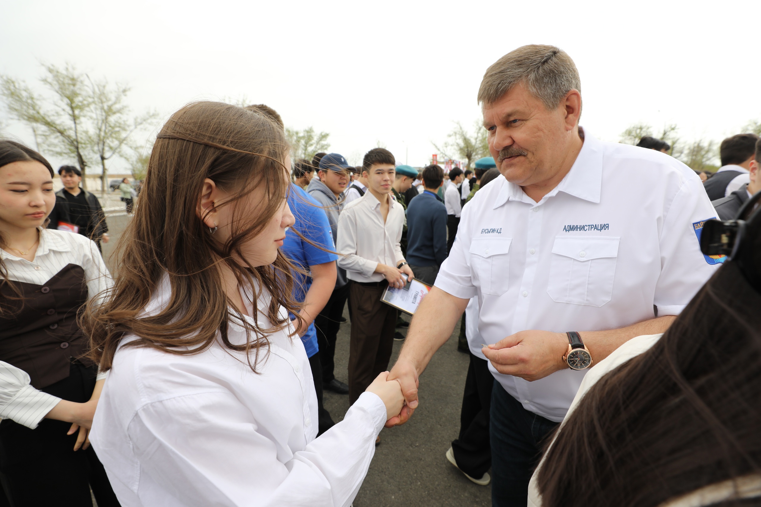 9 апреля в Байконуре состоялось масштабное празднование пятилетия Городского движения детей и молодёжи «Будущее Байконура». Днём в центре «Будущее Байконура» состоялось традиционное посвящение новых участников. Юные байконурцы получили отличительные значки. Почетную миссию вручения выполнили глава администрации города Константин Бусыгин, специальный представитель президента Республики Казахстан на комплексе «Байконур» Кайрат Нуртай, а также представители администрации и почётные гости.