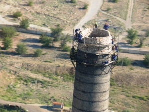 Так, в ГУП ПЭО «Байконурэнерго» г. Байконур 10 июля начались ремонтные работы на дымовой промышленной трубе №2 теплоэлектростанции. Данная кирпичная труба 100-метровой высоты была возведена в 1970 году. За почти сорок лет эксплуатации кирпичная кладка оголовка трубы постепенно стала разрушаться.