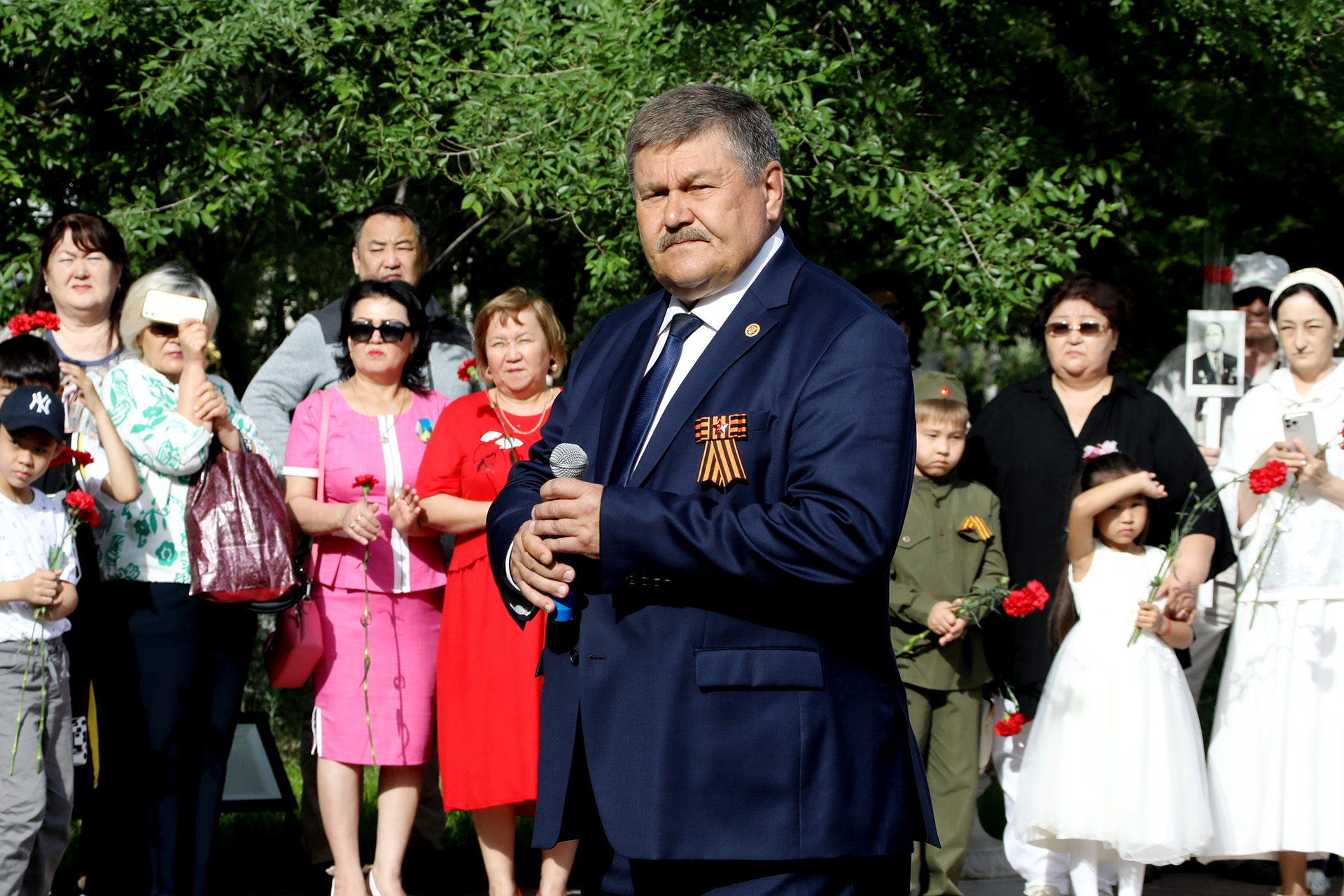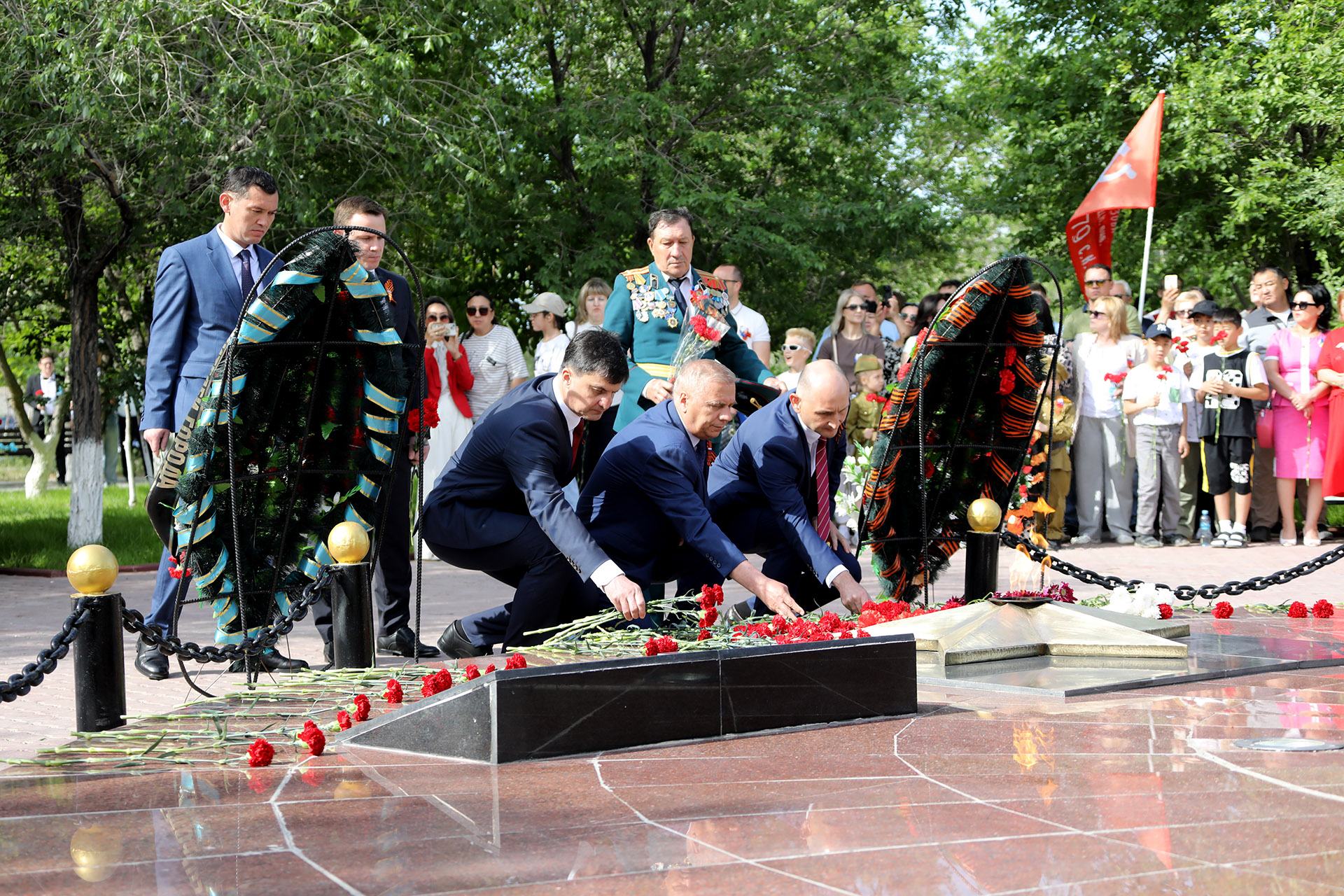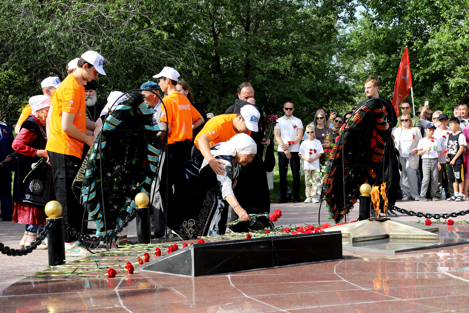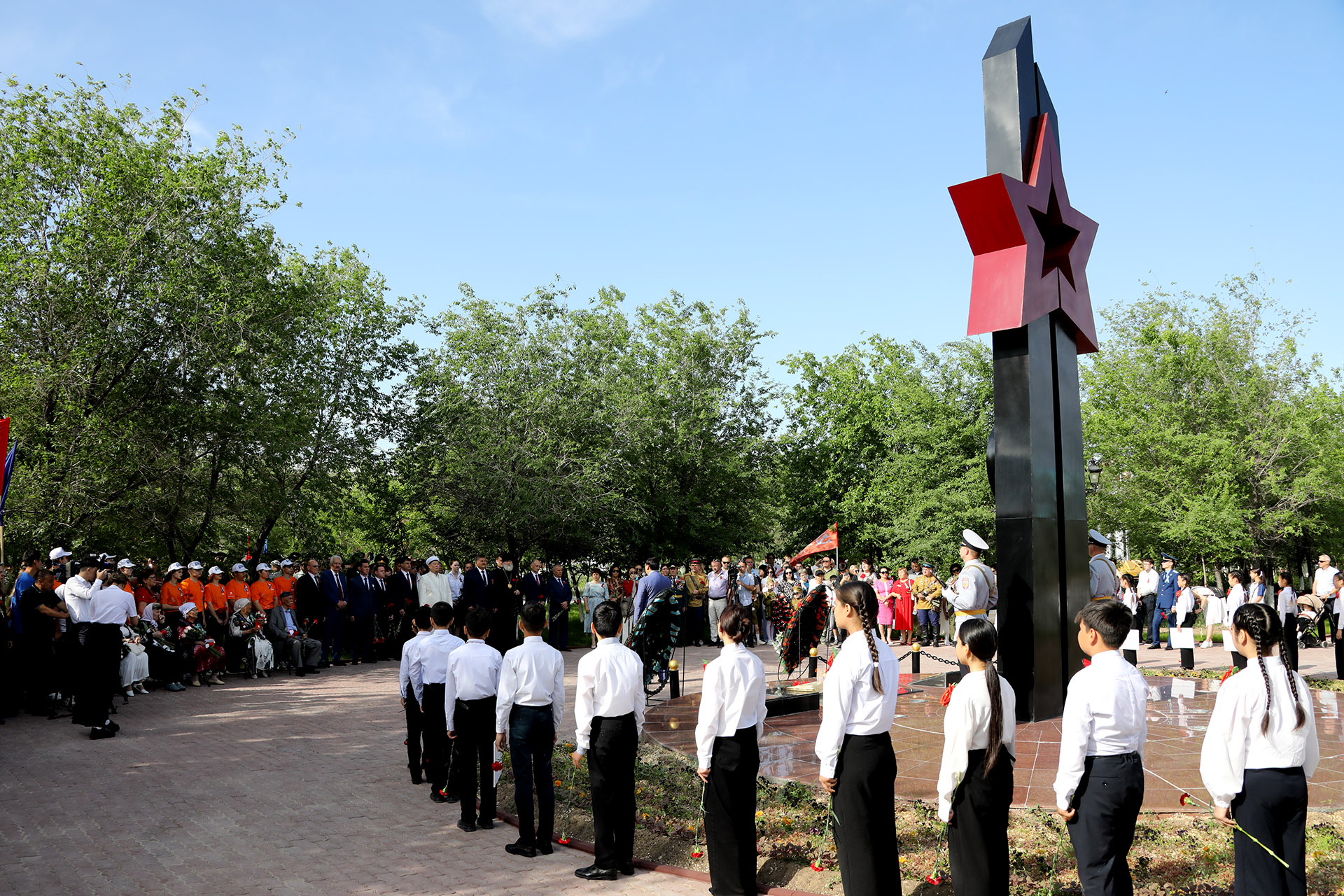 Настоятель храма Святого великомученика Георгия Победоносца отец Даниил отслужил торжественный молебен в память о погибших. Бас-имам центральной мечети «Жарымбет» Омиржан Тобжанов прочитал священные аяты из Корана, вознося молитвы за упокой душ павших воинов.