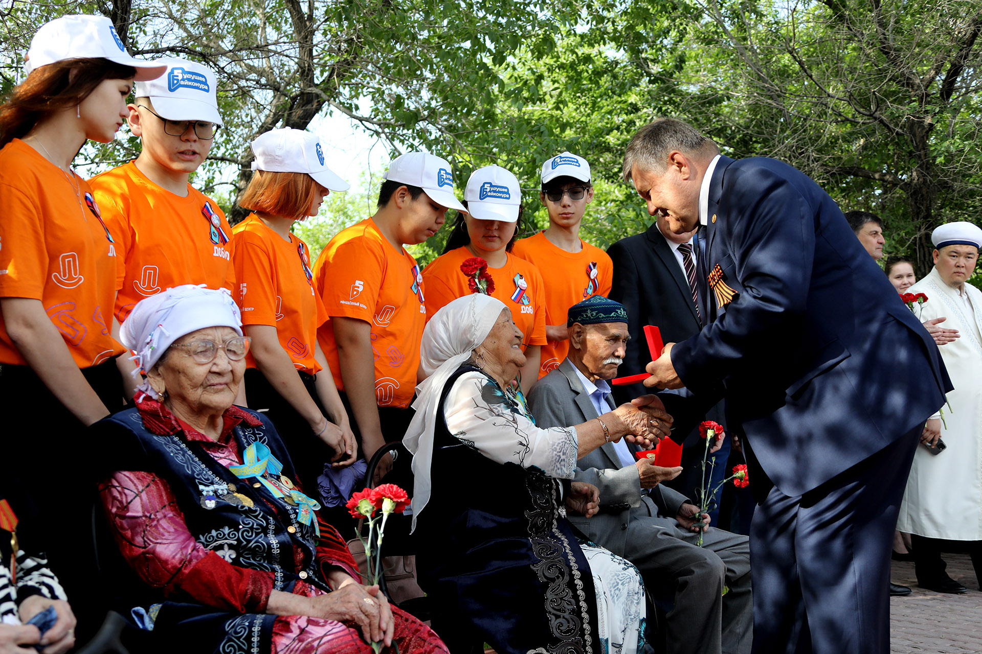 Константин Бусыгин вручил памятные медали «80 лет Победе» ветеранам Великой Отечественной войны-труженикам тыла: Жубанышбаю Исалдаеву, Евдокии Савчевой, Камал Бисеналиевой, Акзибе Жалиевой, Куттыкие Абибуллаеву и Казыне Туякбаевой.