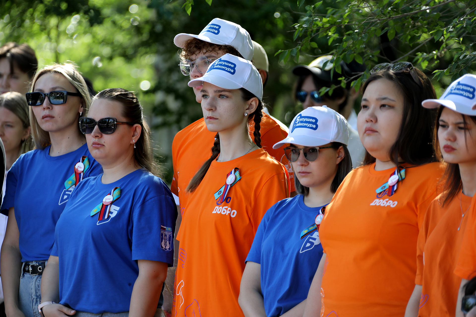 Мероприятие началось с церемонии возложения венков. По команде «Взять! Шагом марш!» почётный караул, состоящий из сотрудников УМВД России и ПМВД Республики Казахстан, торжественно возложил венки к памятнику. В знак глубокой благодарности и памяти глава администрации города Байконура Константин Бусыгин и специальный представитель президента Республики Казахстан на комплексе «Байконур» Кайрат Нуртай склонили головы у Вечного огня.